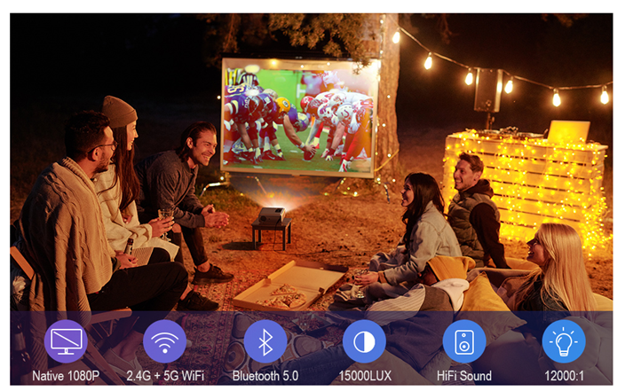 - ?【HiFi Speakers & Low-noise Radiator Fan: 】 We have built-in 10W dual stereo speakers with a HiFi system for a great auditory sense experience. Listen to what you want, not what you don’t with the projector’s optimized low-noise radiator fan, it has a 20% reduction in noise compared to competitors. And because of this improved fan it also helps to extend the life of the projector to 50,000 working hours.