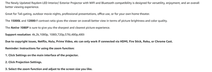 - ?【Native 1080P, 15000L & 550 ANSI Lumens, 4K supported】 2023 upgraded WiFi projector, using the original physical resolution of 1920x1080, has 3 layers of refractive glass lenses. Compared to our competitors who use single layer lenses, we use multi-layer refractive glass lense technology to reduce projecting blurry edges on screen. Its display is calculated to render sharper resolution to the full screen. It has 550 ANSI lumens, much brighter and more colorful than other 1080p projectors.