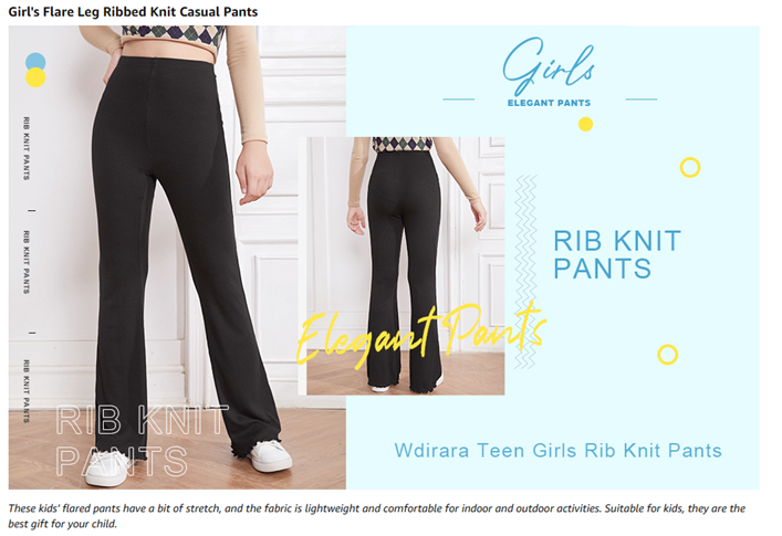 WDIRARA Girl's Elastic Waist Flare Leg Ribbed Knit Casual Stretch Long Pants