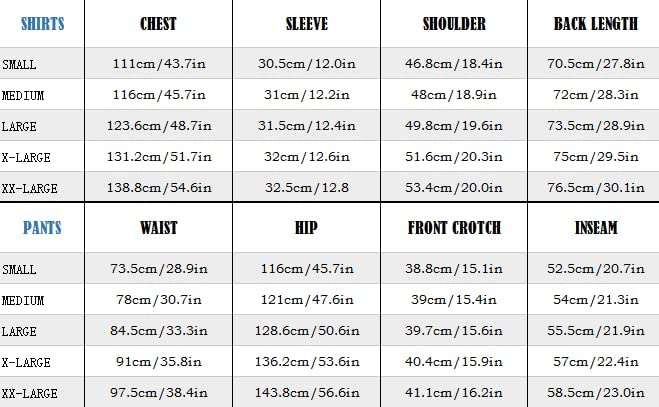 Size Chart for Men's Linen Set 2 Piece Outfits
