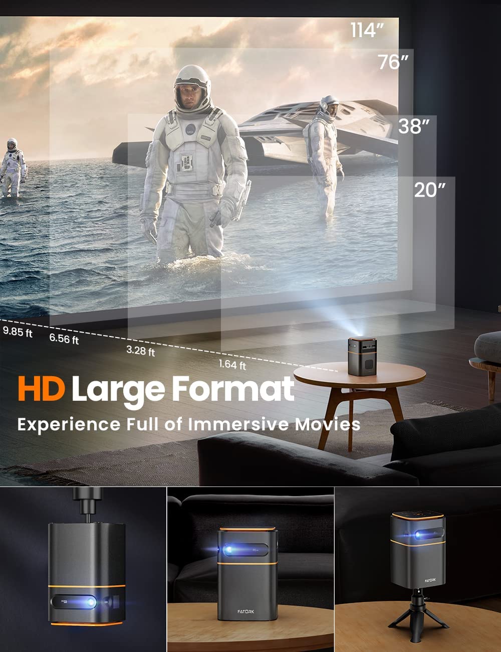 FATORK Small Projector is a DLP projection method. High contrast, 150 ANSI lumens high brightness for bright and clear images. It is a smartphone projector that automatically corrects keystone distortion up and down 40° vertically, and also supports manual vertical keystone correction.