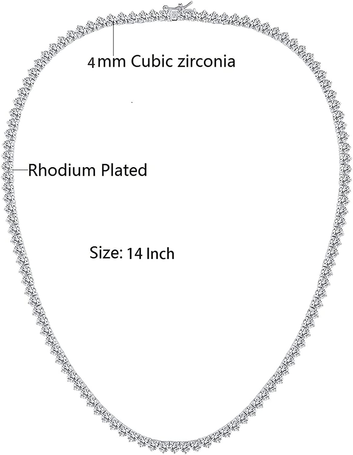 Necklace Dimension: Necklace Measures 22 inch, 4mm Round Cut Cubic Zirconia Stones.