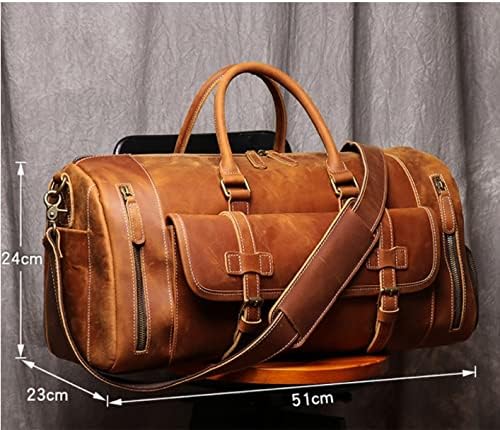 ZLXDP Leather Men's Travel Bag with Shoe Pocket 20 Inch Big Capacity Vintage Leather Weekend Messenger Bag