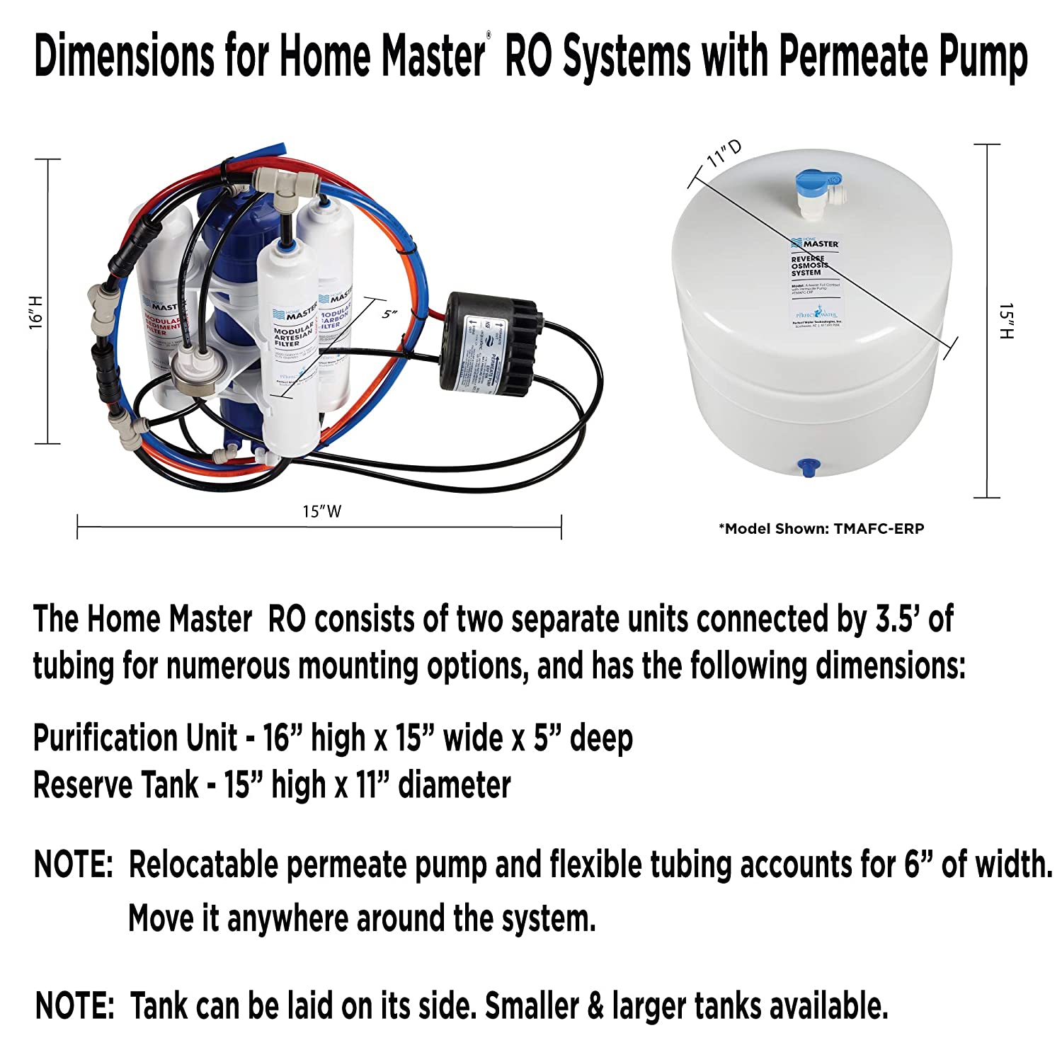 The Home Master Artesian Full Contact with Permeate Pump Undersink Reverse Osmosis System delivers exceptional water purity while also adding beneficial minerals that produce clean, great-tasting mineral water on tap. The built-in non-electric permeate pump will reduce water waste while increasing water production. Home Master's innovative design eliminates the most common problems found in traditional RO systems -- canister filter housing leaks, slow flow rate, high water waste, service challenges, and slightly acidic water. Its superior performance has made it one of the best RO systems on the market and it. What makes the Home Master Artesian Full Contact with Permeate Pump a smarter choice? Clean, great-tasting water; modular filter design; better water efficiency; easy-to-change filters; and a faster flow rate. Home Master components included in the design and construction of this product meet or exceed NSF standards for material safety and water purification performance. This package contains a fully assembled purification unit that includes the RO membrane and filters, storage tank, 3/8-inch feed-water adapter with shut off valve, chrome RO faucet, RO adapter, drain saddle, and instructions.