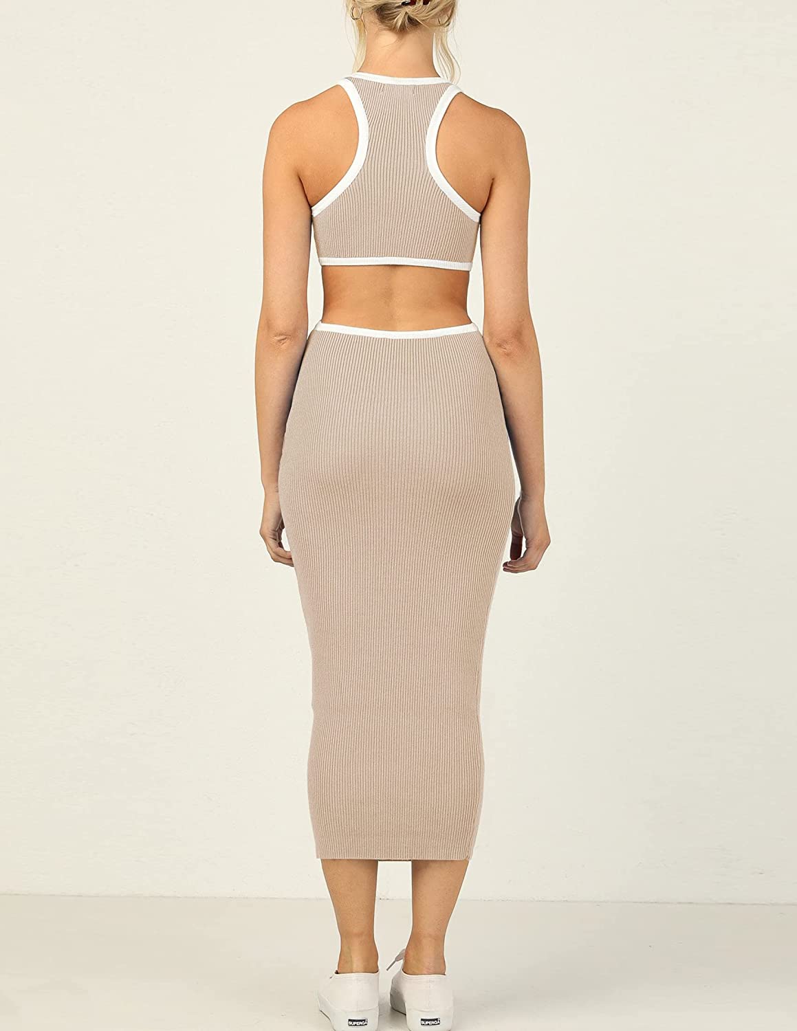 • ♥FEATURES:GETBIGORSMALL Women's bodycon dress,sleeveless and backless style,crewneck,threaded knit.The striking cut out waist shows your sexy waist perfectly,let you stand out in the crowd.The tight-fitting design makes the midi dress more versatile and make you charming.