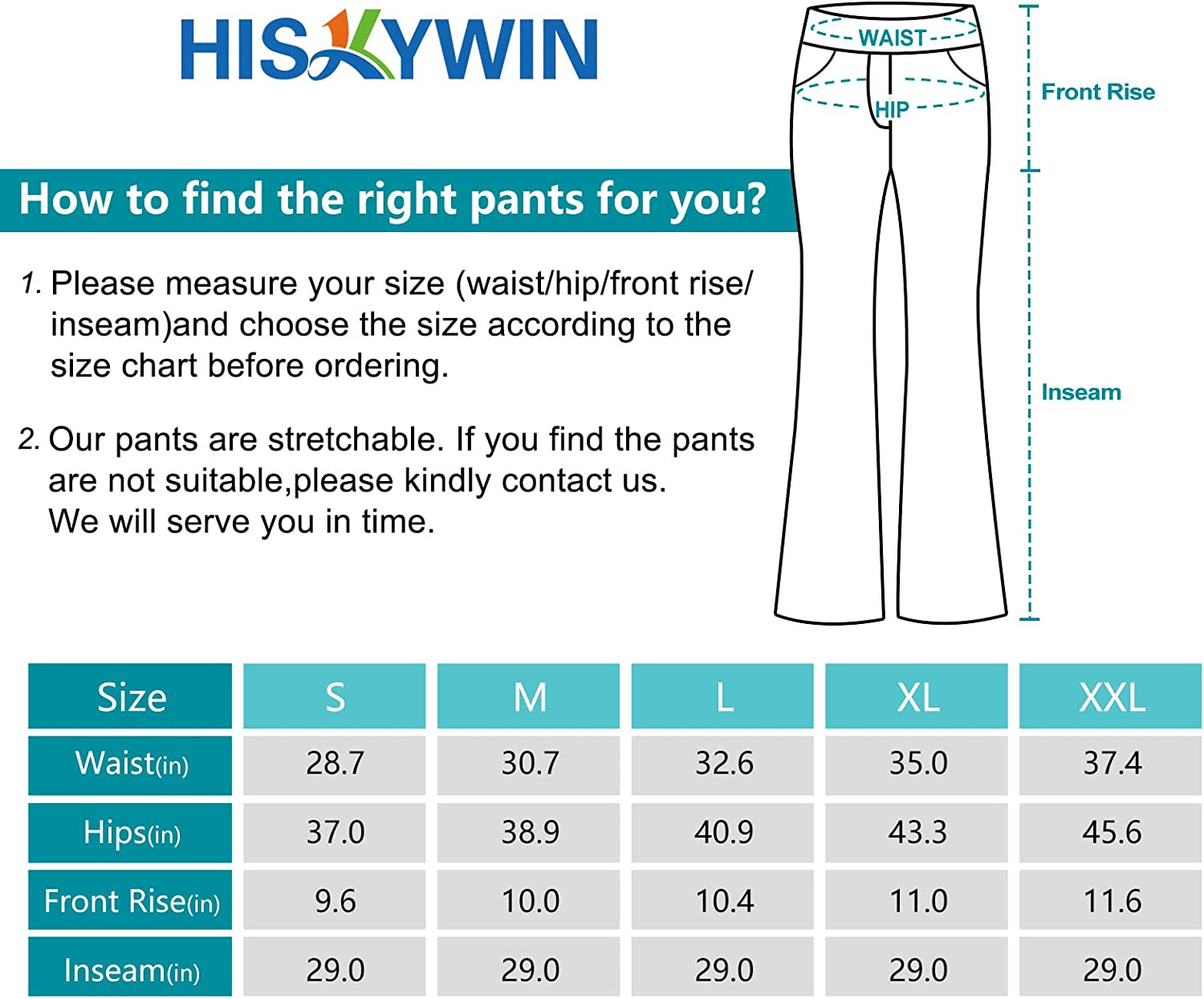 SLIGHT FLARE & ZIPPER-FLY STYLE: Featuring bootcut leg to conform to your body. High elastic waist, classic zipper fly and button closure. These relaxed fit pants are suitable for work or casual.