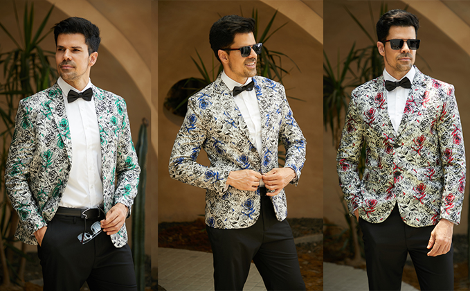 Men Floral Print Blazer Jacket Material:Polyester Viscose Blended