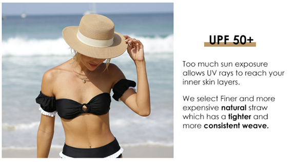 Two Sizes to Fit Most: Two sizes are offered for this beach hats; Size M is recommended for head circumference around 22"-23 1/8" and Size L is recommended for head circumference around L 23 1/8"-24" ; If you feel it is too tight or too loose, you can adjust the size by inner velcro; Also, a detachable chin strap can hold it in place in blustery days,that you can keep the hat stable on top of your head.And Inner sweat band to help wick away moisture during the hot & humid summer seasons;