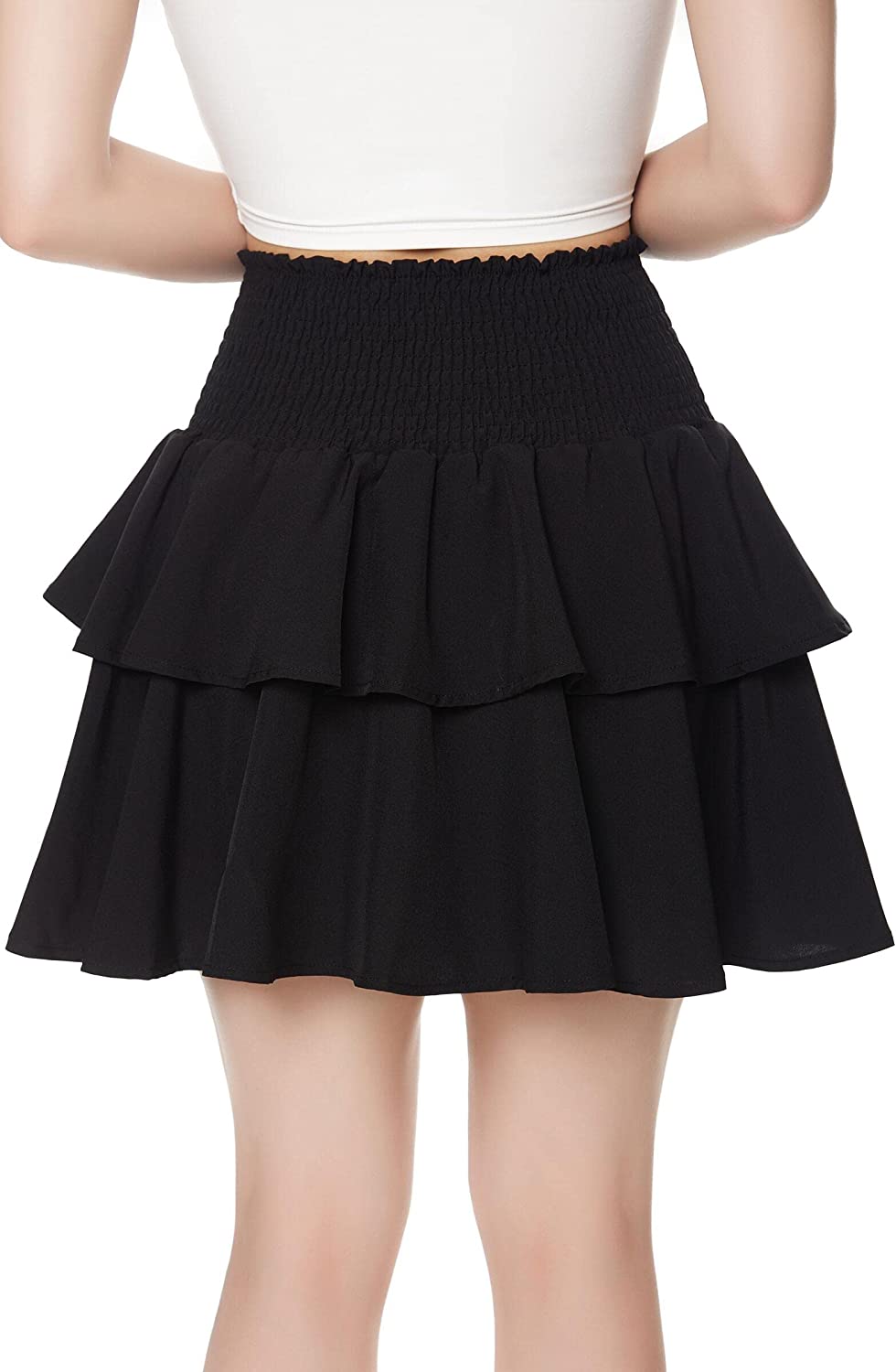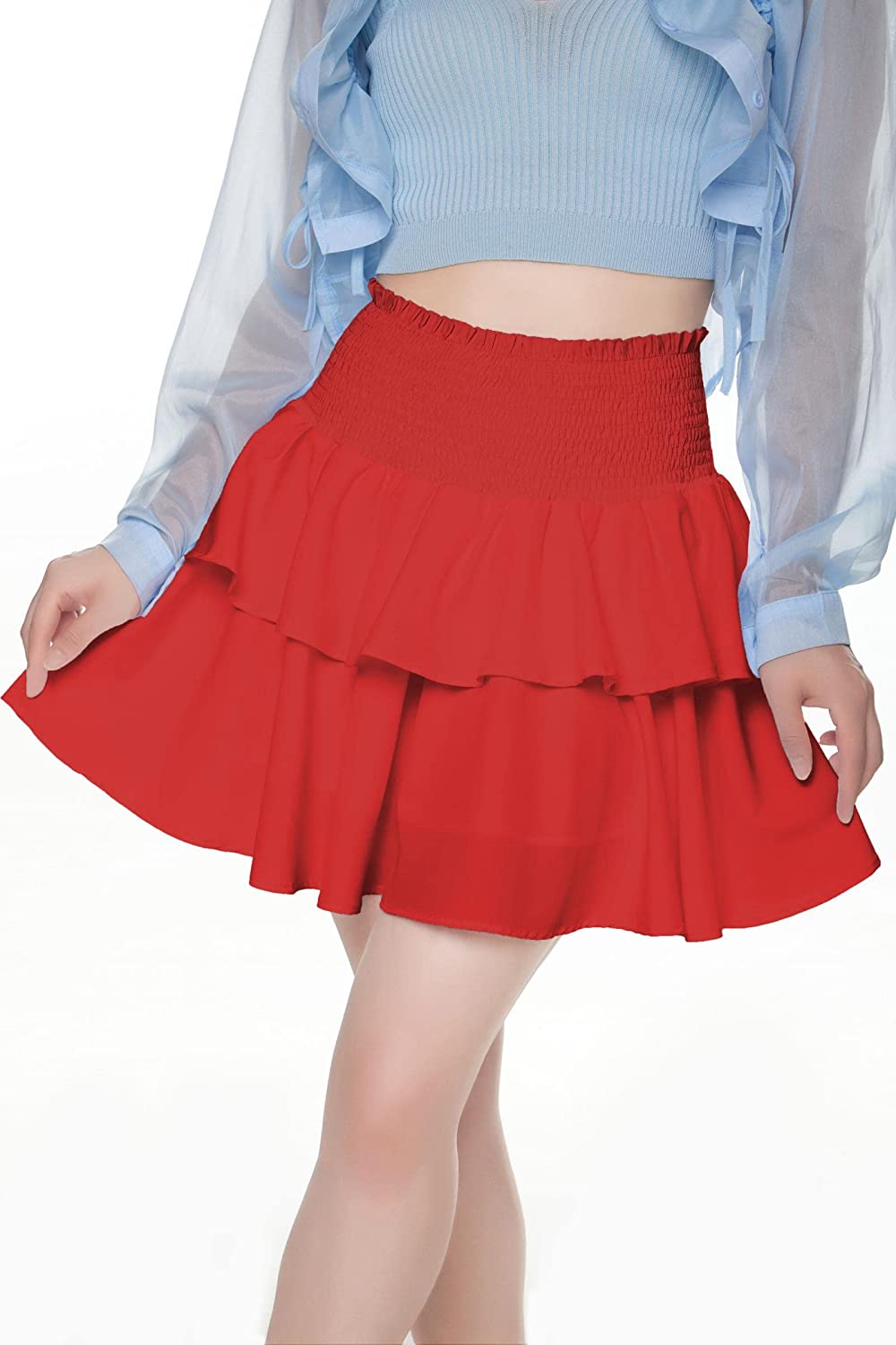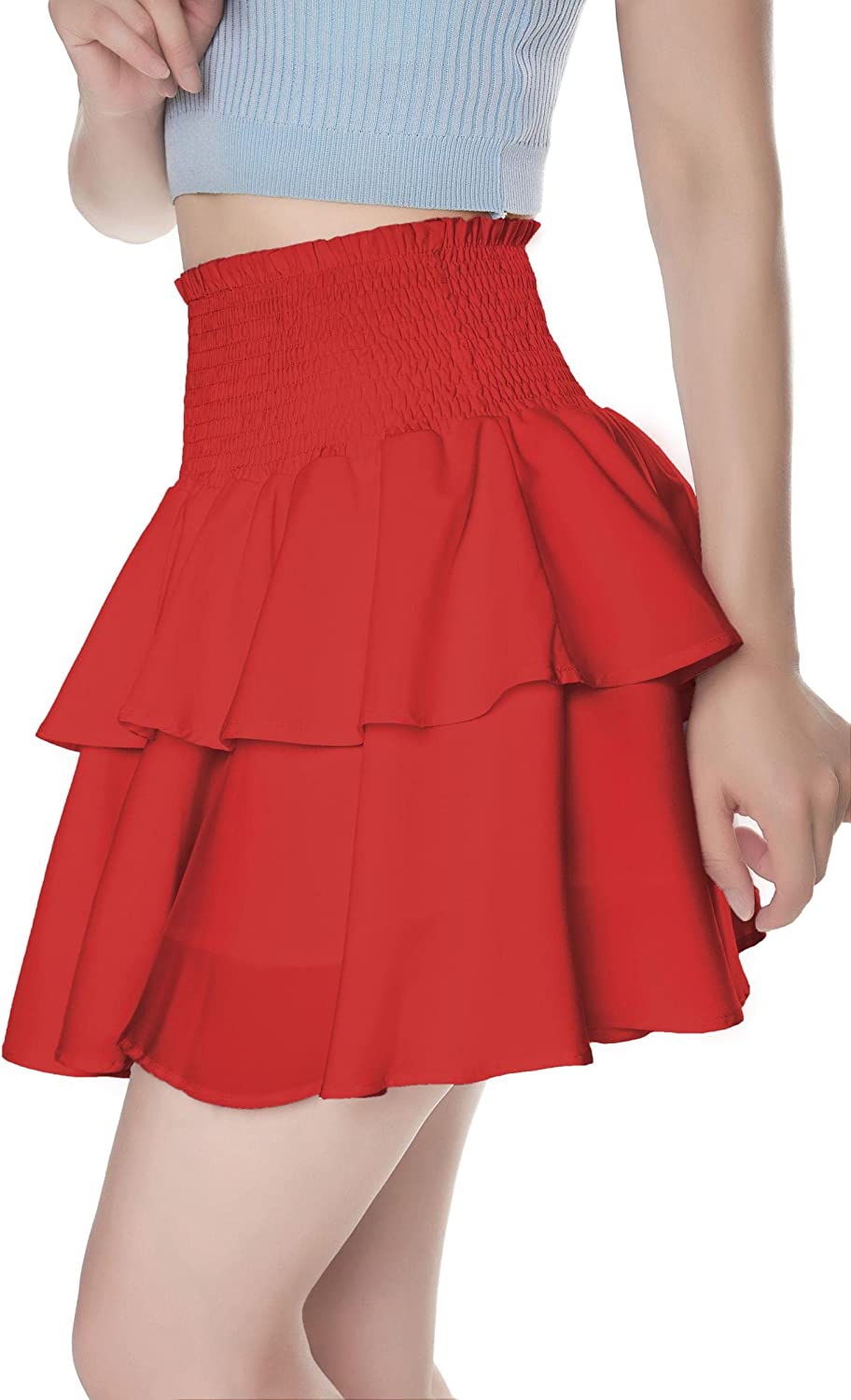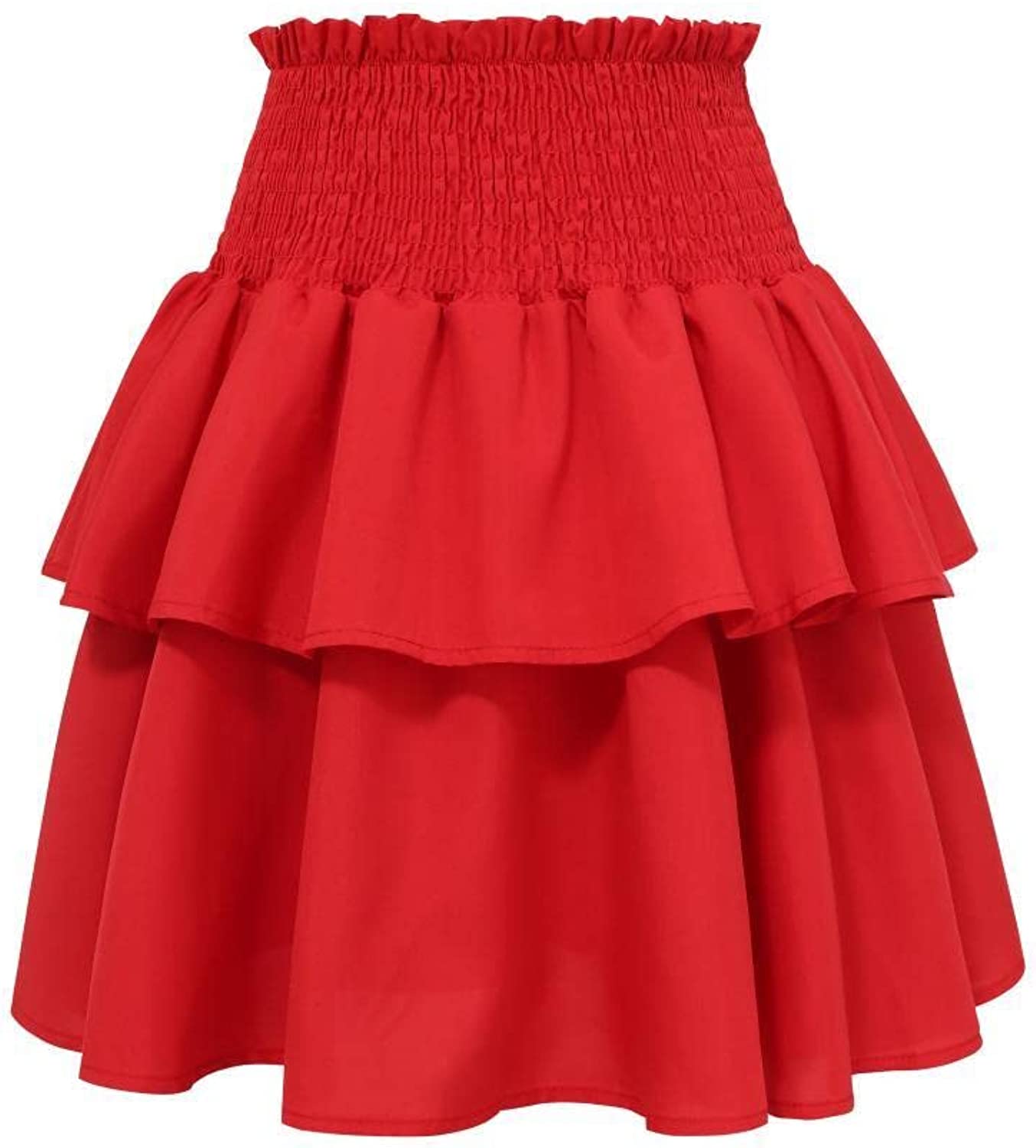 Features: elastic waist, solid color, layered ruffle, A-line skirt, short flared skirt. Easy to adjust, the waist is not too tight, and the skirt can be pulled up and down to adjust the length.
