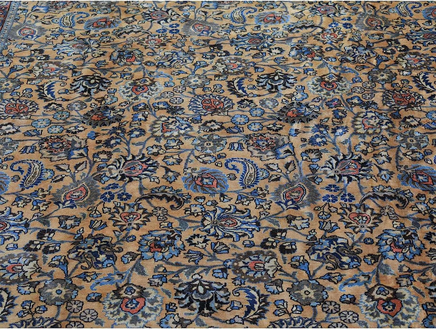 Shahbanu Rugs Ivory, Antique Farsian Mashad, Hand Knotted, 100% Wool, Oversized Rug (11'9" x 16'4")