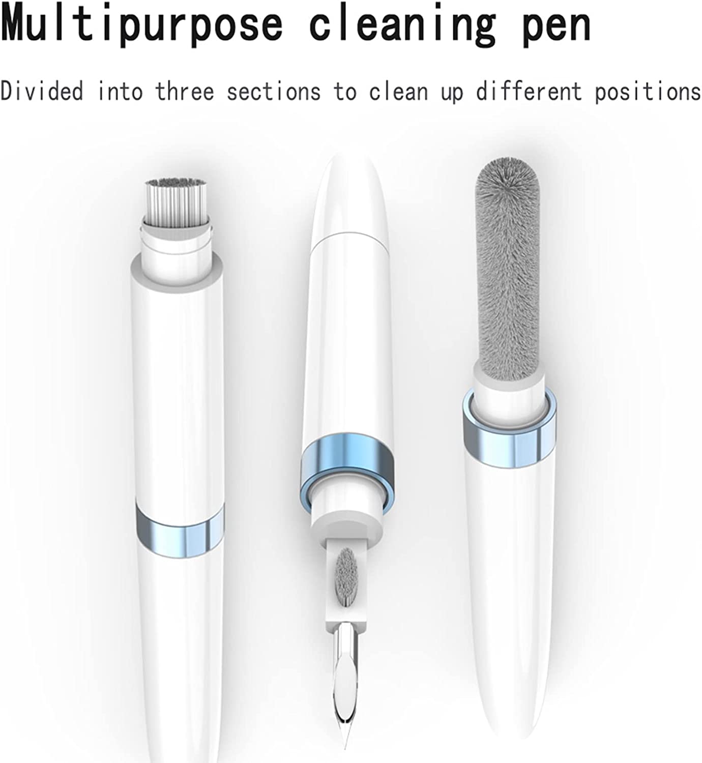 EARBUD CLEANING PEN CONSISTS OF FOUR PARTS: A Pen Tip, A Long-Haired Brush, And 2 Cleaning Brushes. earphone cleaning kit with Flocking Sponge, High-density Brush and Metal Pen Tip, dual head hidden design to meet a variety of cleaning needs