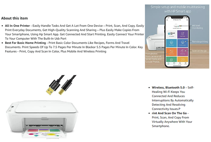 • ALL IN ONE PRINTER - Easily handle tasks and get a lot from one device – print, scan, and copy. Easily print everyday documents, get high-quality scanning and sharing – plus easily make copies from your smartphone, using HP Smart app. Get connected and start printing. Easily connect your printer to your computer with the built-in USB port.