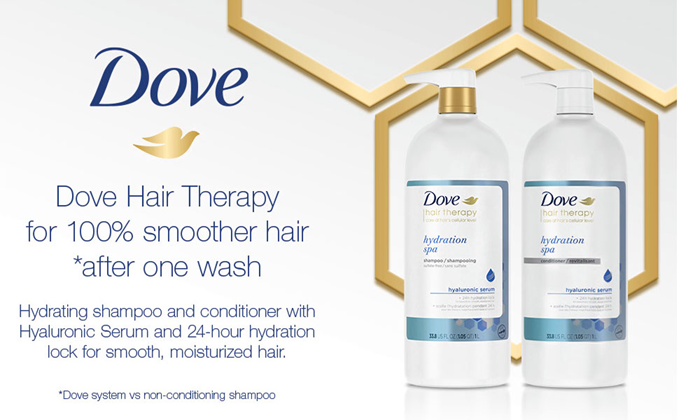 Perfect for dry hair, Dove Hair Therapy Hydration Spa Conditioner with Hyaluronic Serum is formulated with our 24-hour hydration lock technology to keep hair hydrated for longer.