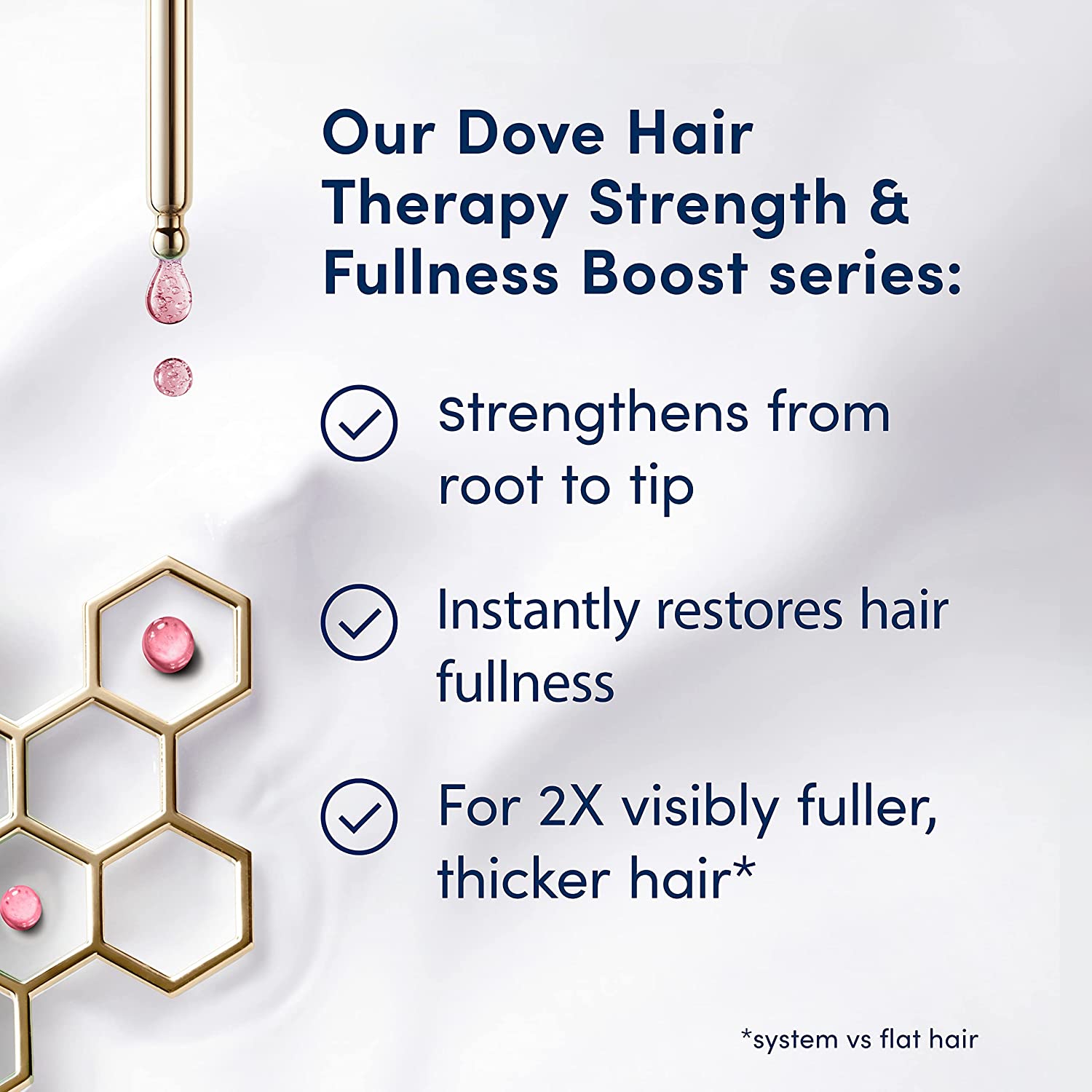 • Dove Hair Therapy Strength and Fullness Boost Shampoo is a thickening, sulfate free shampoo for 2X visibly fuller, thicker hair* (*system vs. flat hair)