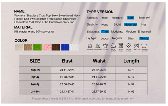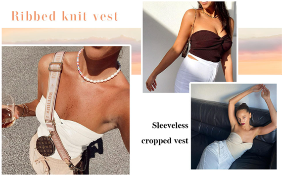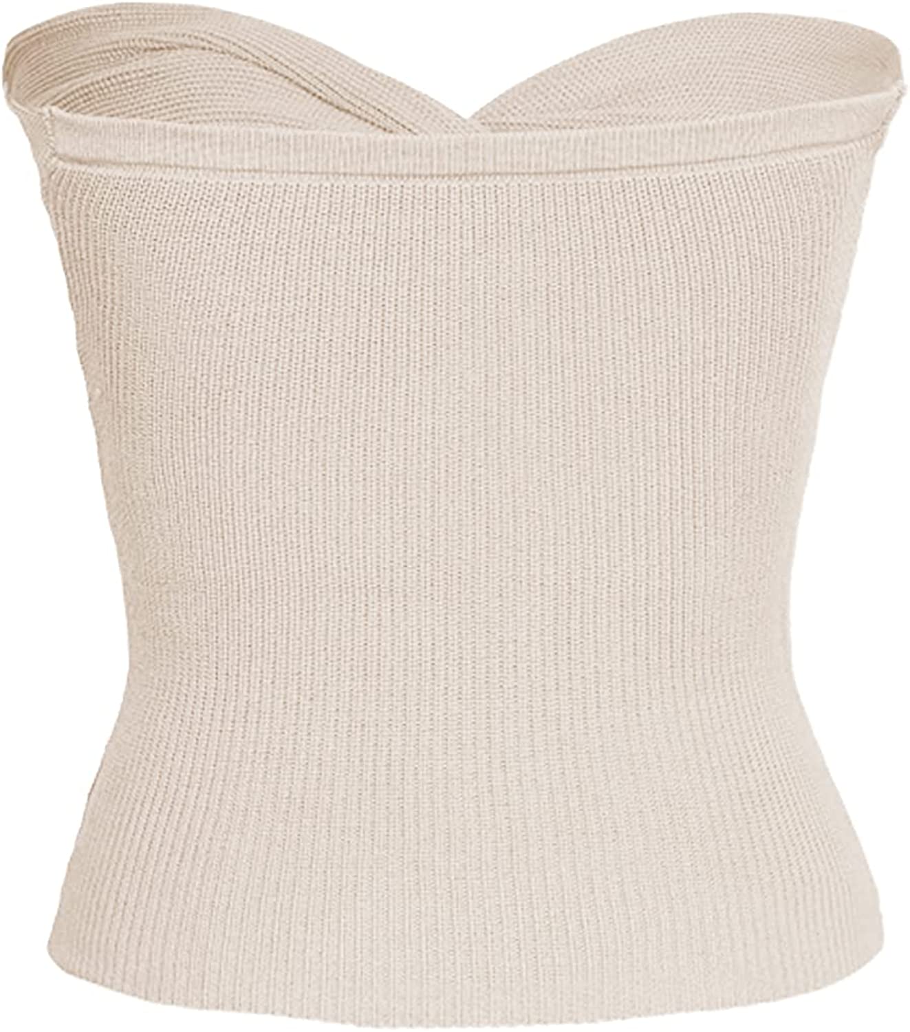 Womens Crop Camis Feature: Strapless, Sleevess, Twisted Knot Front,Ribbed Knit,Sweetheart Neckline,Scoop Underbust, Keep you trendy, flattering and eye-catching at any time and anywhere.