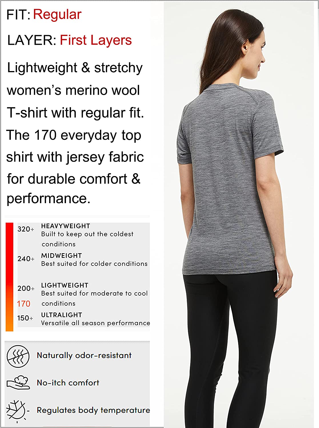 APPLICABLE: Durable Merino fabric for everyday crewe provide versatile comfort, breathability and next-to-skin softness, comfy enough for home. Women's merino wool Tee Shirts for any day, anywhere.