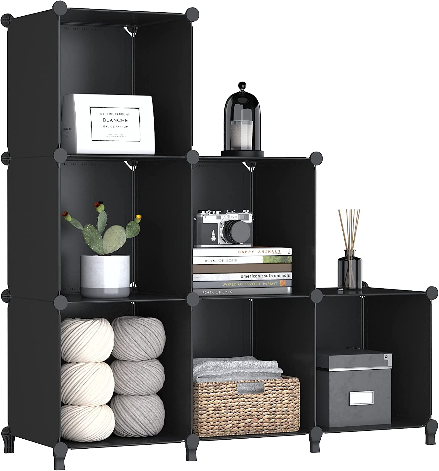 Ample Storage Space: It's a ideal shelf, The size of each cube is 12"D x 12"W x 12"H, The product measures 12"D x 37"W x 37"H. You can store as many things as you want with 6 cube storage racks for your everyday storage needs