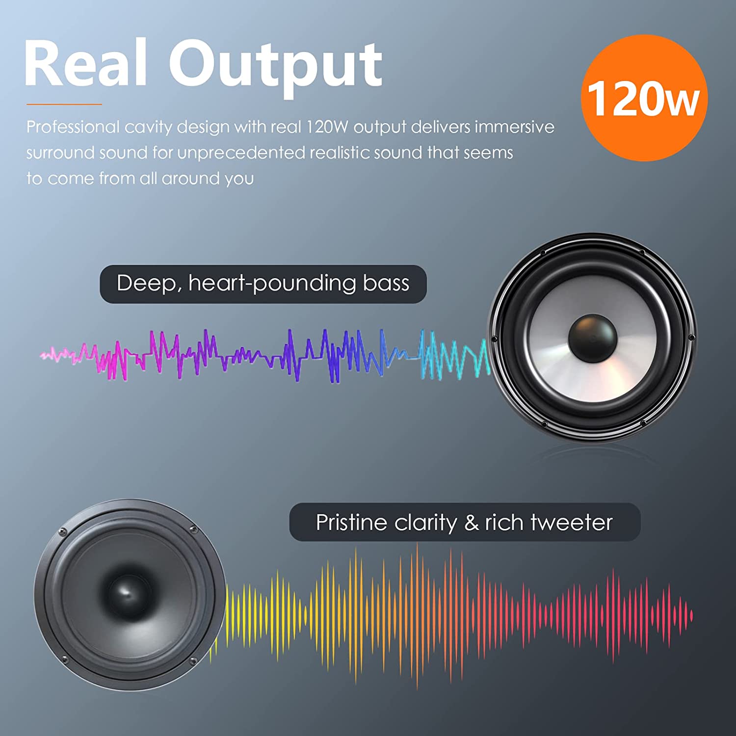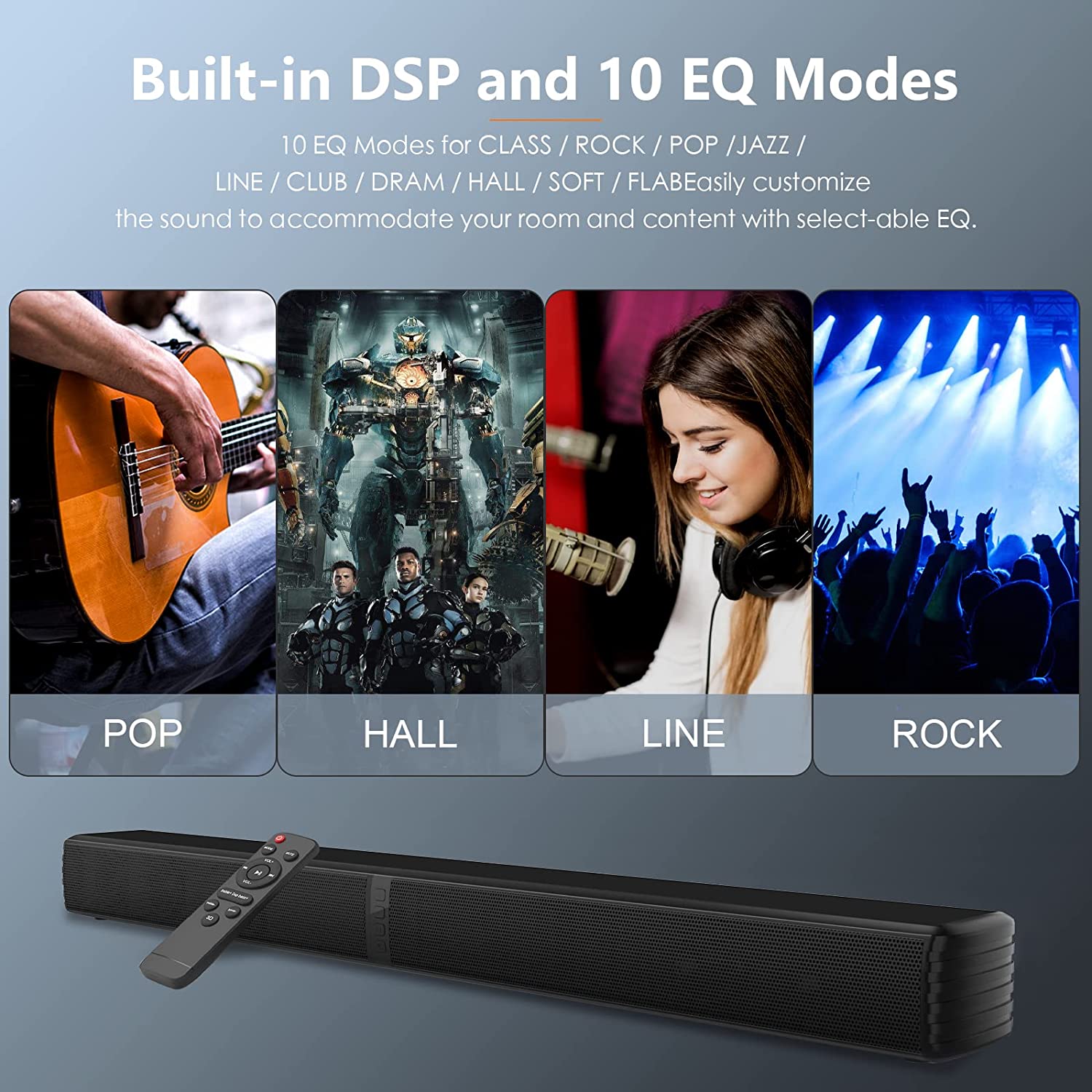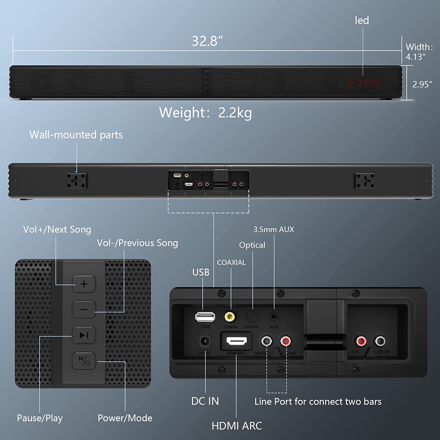 GEOYEAO Sound Bars for TV, 2.2 CH 32 inch 3D Surround Sound Home Theater System with HDMI-ARC/Opt/Bluetooth 5.0, Built-in Dual Subwoofer & 10 DSP, Treble/Bass Adjustable, 2 in 1 Separable Design