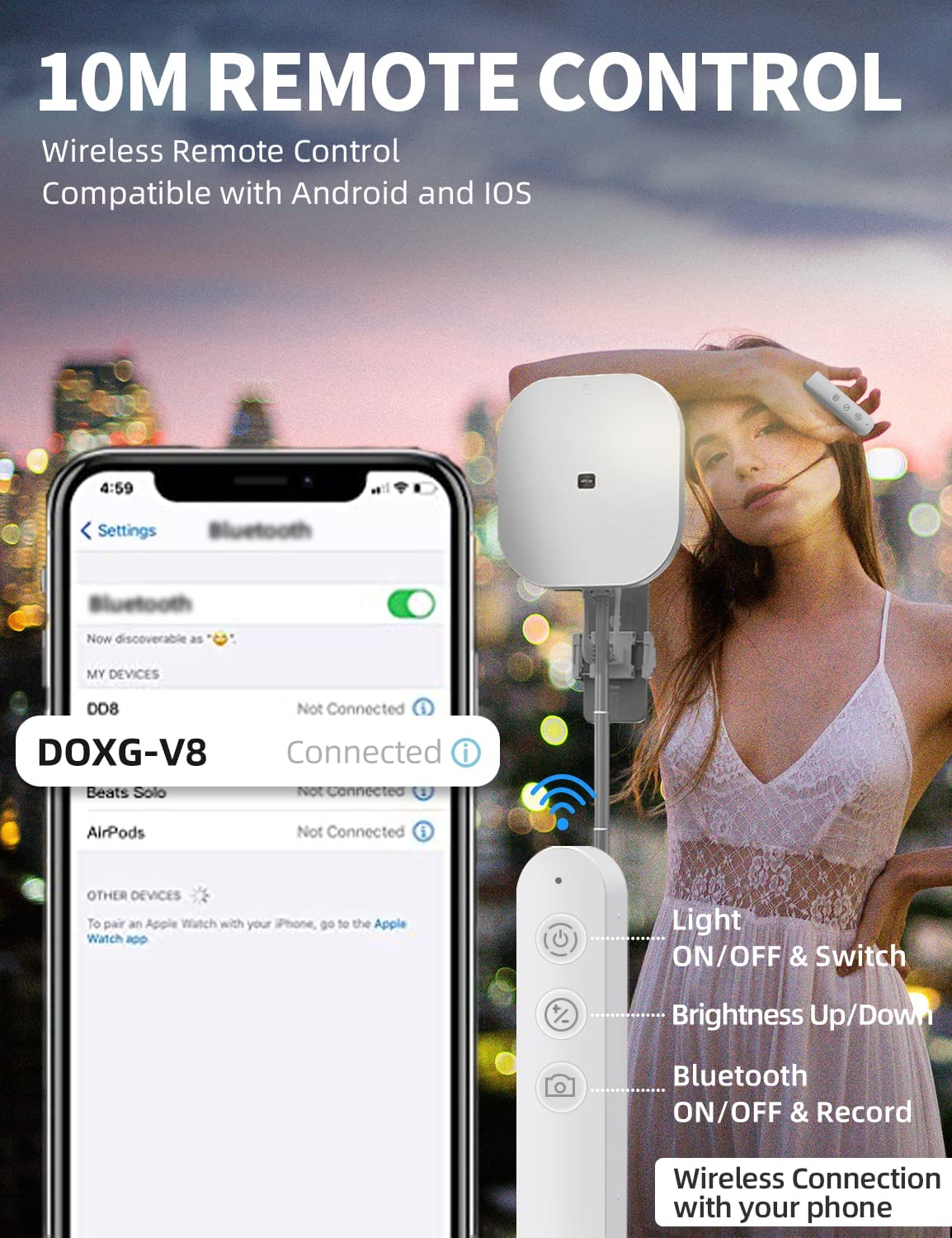 [Built-in Battery Selfie Stand] This selfie live stand box has built-in 3600mah battery, can work for 4-12 hours after charging. USB charging cable can be easily inserted, such as mobile power supply, computer, etc. Wireless connection ranges 32.8 feet(10m), the remote control makes you to easily take photos or videos.(note: please charge it for the first time using if it not working),Phone holder with light for recording.