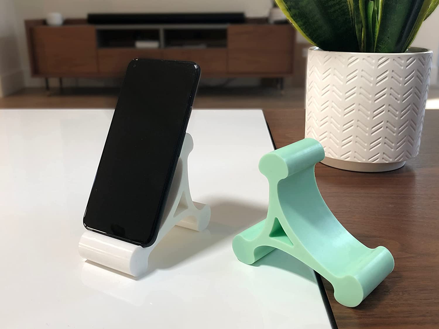 - MODERN MATERIALS - Skalene Phone Stands are made of flexible and resilient silicone rubber, making them anti-slip, anti-scratch, and easy to clean/disinfect.