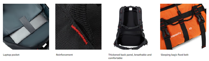 • *Waterproof and durable: including waterproof materials. The Camping Backpack is made of super thick, tear resistant, waterproof and wear-resistant polyester fiber. All stress points are reinforced with joint reinforcement to prolong their service life