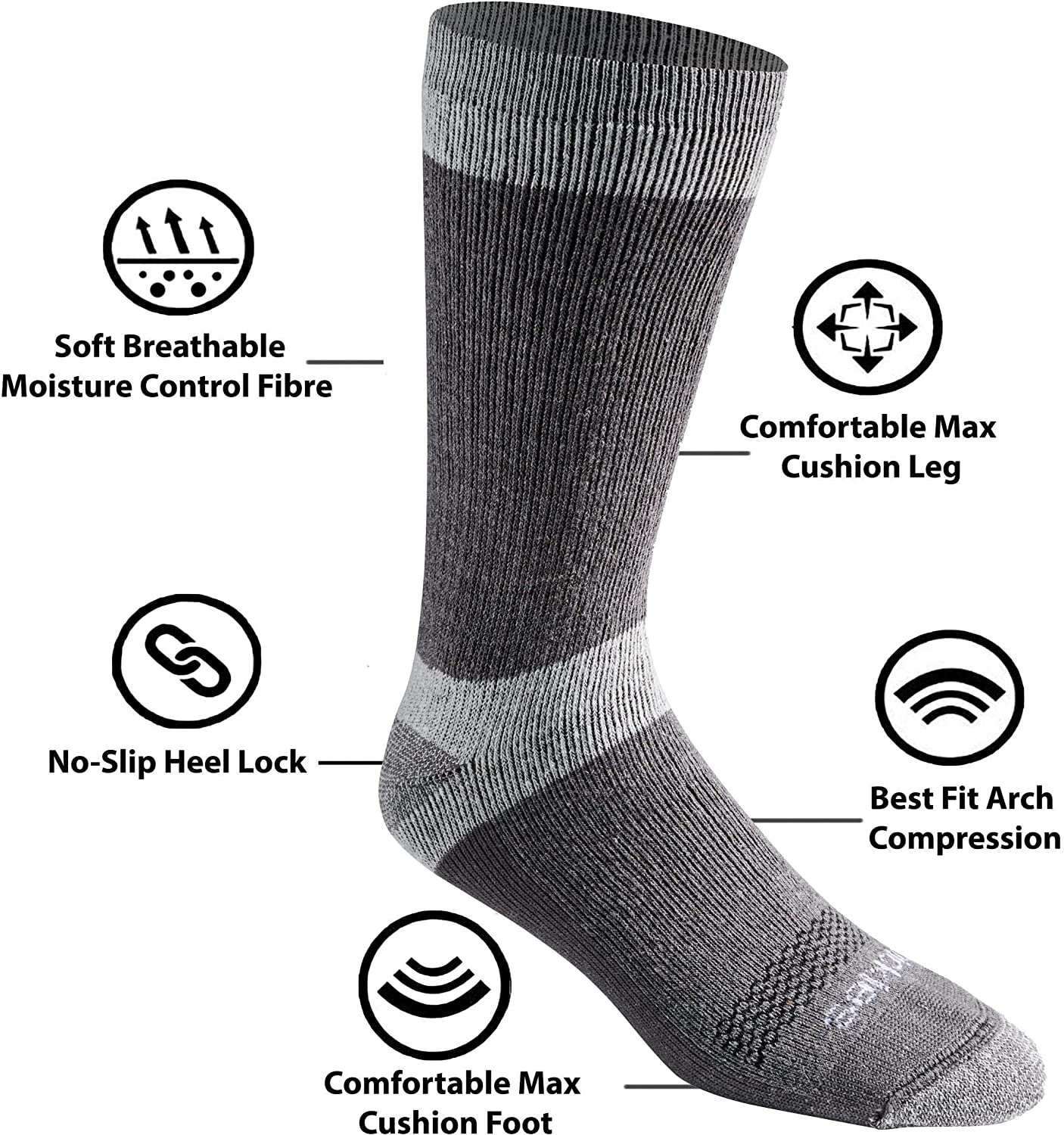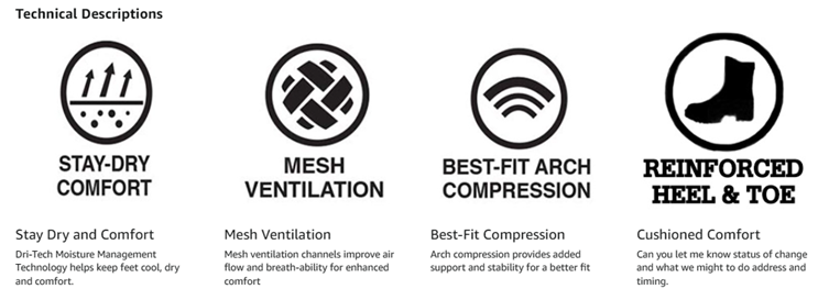 Dickies DRI-TECH comfort 6 and 12 Pairs with wicking, moisture management fibers keeps feet dry, ventilation channels engineered for air circulation and moisture control, arch compression support hugs feet and keeps socks in place, while providing in-step support, superior fit and full cushion comforts.