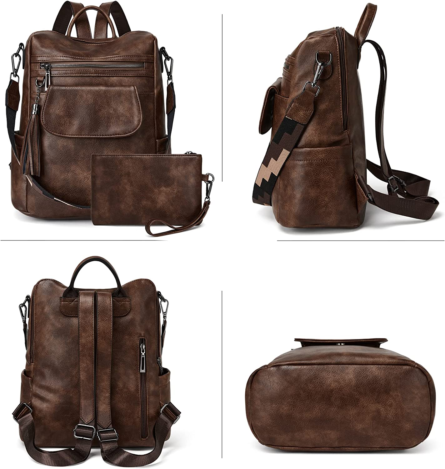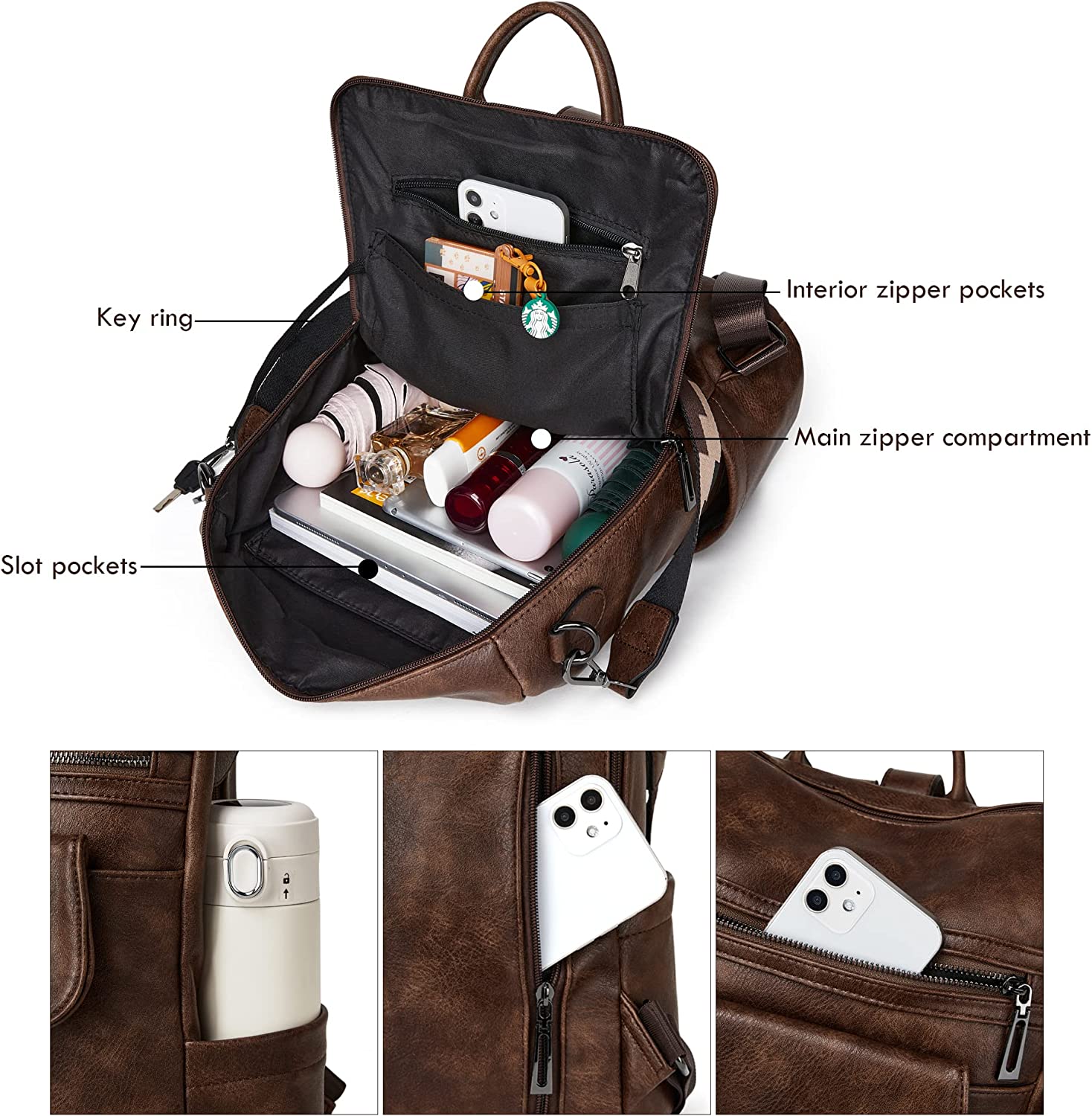 【LARGE CAPACITY】This leather backpack purse for women adopts a large vertical opening at the top, which is very convenient for loading items. 1 inner zipper pockets, 2 inner slot pockets, 2 front pockets, 2 side pockets, and 1 back zipper pocket. The extra wristlet provides more compartments. Multiple pockets can keep your things well organized.