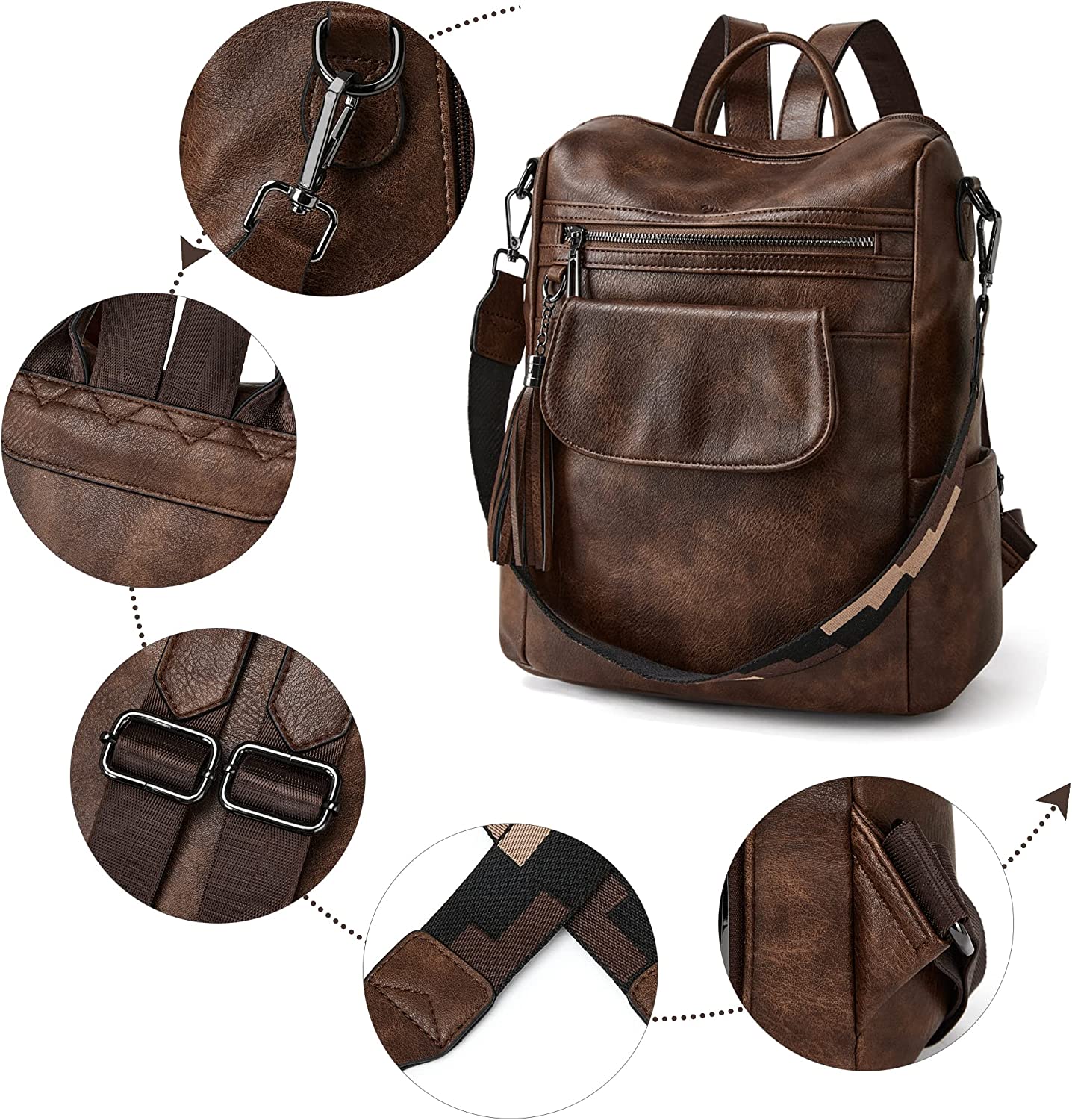 【HIGH-QUALITY MATERIAL】This backpack purse for women is made of high-quality water-resistant, anti-scratch and tear-resistant soft leather, metal accessories, canvas shoulder strap and fabric lining, all these details are fashionable and durable. and there is a cute tassel next to the front pocket.