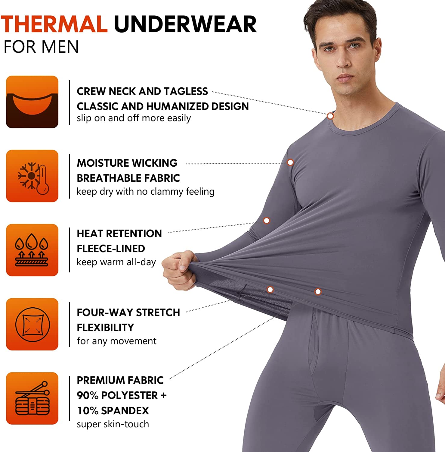 STRONG MOISTURE WICKING(WITHOUT THE SWEATY MESS): Our fans say the unique breathable, moisture-wicking fibers on CL thermal underwear will wick away moisture to keep you dry with no sticky or clammy feeling so you can wear them all day for your work or snow adventure. The smiles on men's faces will tell you how satisfied with this thermal underwear set.