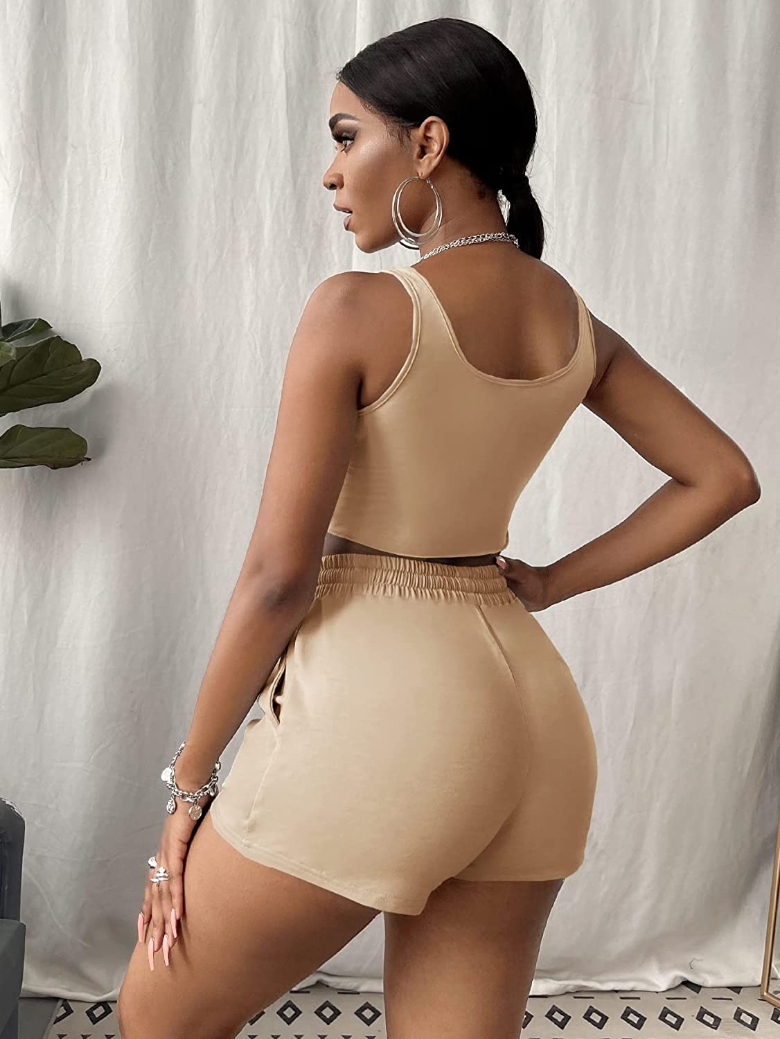 SOLY HUX Women's Crop Tank Top and Drawstring Waist Track Shorts Set 2 Piece Outfits