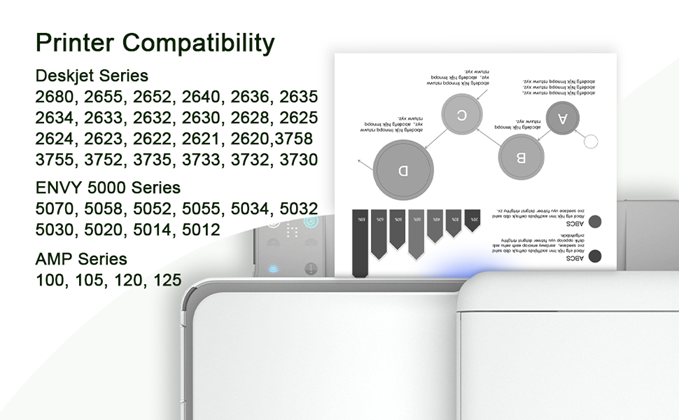 • Compatibility Printer: 65 xl black ink cartridge for hp printers Deskjet 2600 Series: 2680 2655 2652 2640 2636 2635 2634 2633 2632 2630 2628 2625 2624 2623 2622 2621 2620; Deskjet 3700 Series: 3758 3755 3752 3735 3733 3732 3730 3724 3723 3722 3721 3720; ENVY 5000 Series: 5070 5058 5052 5055 5034 5032 5030 5020 5014 5012 5010; AMP Series: 100 105 120 125 130 Printer
