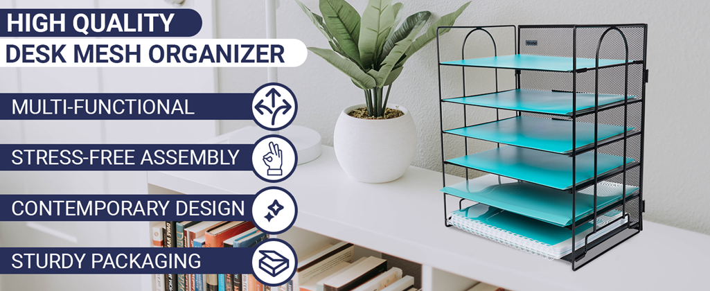 • Robust Construction - Made with a heavy-duty metal mesh and a solid metal base, this desk organizer keeps your desks junk-free for years on end. Whether you need an organizer for work or your kid’s desks, we got you covered from your office to your kid’s virtual classes.