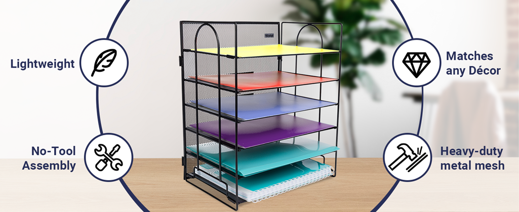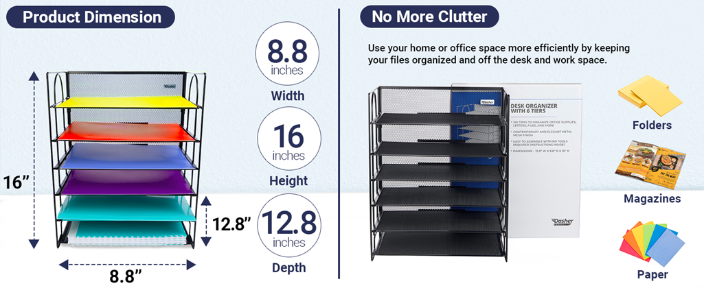 • 6 Tier File Organizer - From magazines and newspapers to work folders and reports, you can organize any document, file, or folder. The 6 separate compartments keep everything you need always at an arm’s reach, while the organizer itself never gets in your way.