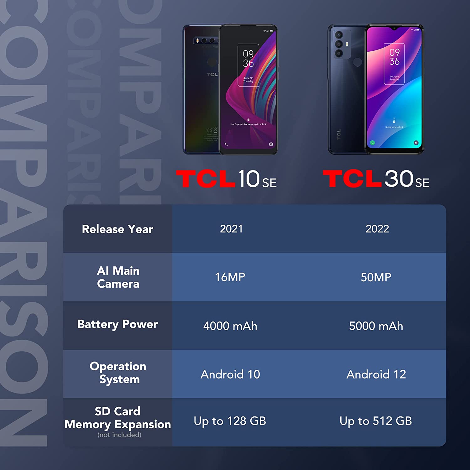 TCL 30 SE mobile phone does not support 5G, NFC, and 5Ghz Wi-Fi. US version with a one-year US warranty.