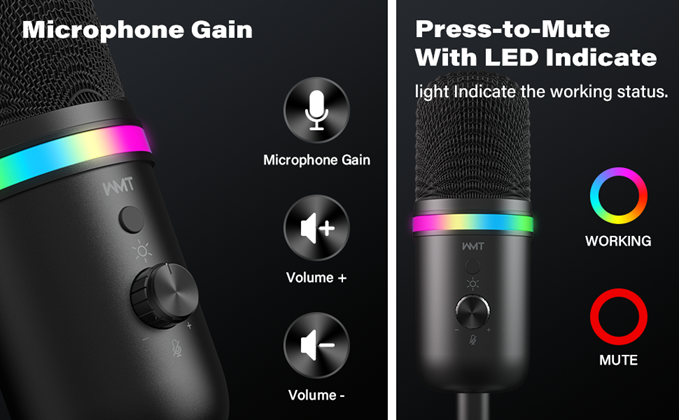 • EASY-TO-REACH CONTROLS - The gain knob enables quickly adjustment if there is any sensitivity, lack of sound or distortion during live broadcasting. Or if you want to take a break in the middle of a podcast, lightly press the gain knob,One-press mute. And there is a 3.5mm headphone jack on the back of this USB streaming mic for real-time monitoring.