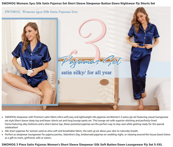 PREMIUM SILK STAIN FABRIC: Women's 3pcs satin pajamas is made of high quality 95% Polyester, 5% Spandex silk satin material. Breathable and stay cool on hot summer nights.Great for sleeping, casual wear or lounging around the house or yard all day.