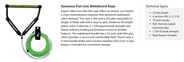 | Included Components | Dyneema Thermal Wakeboard Rope |