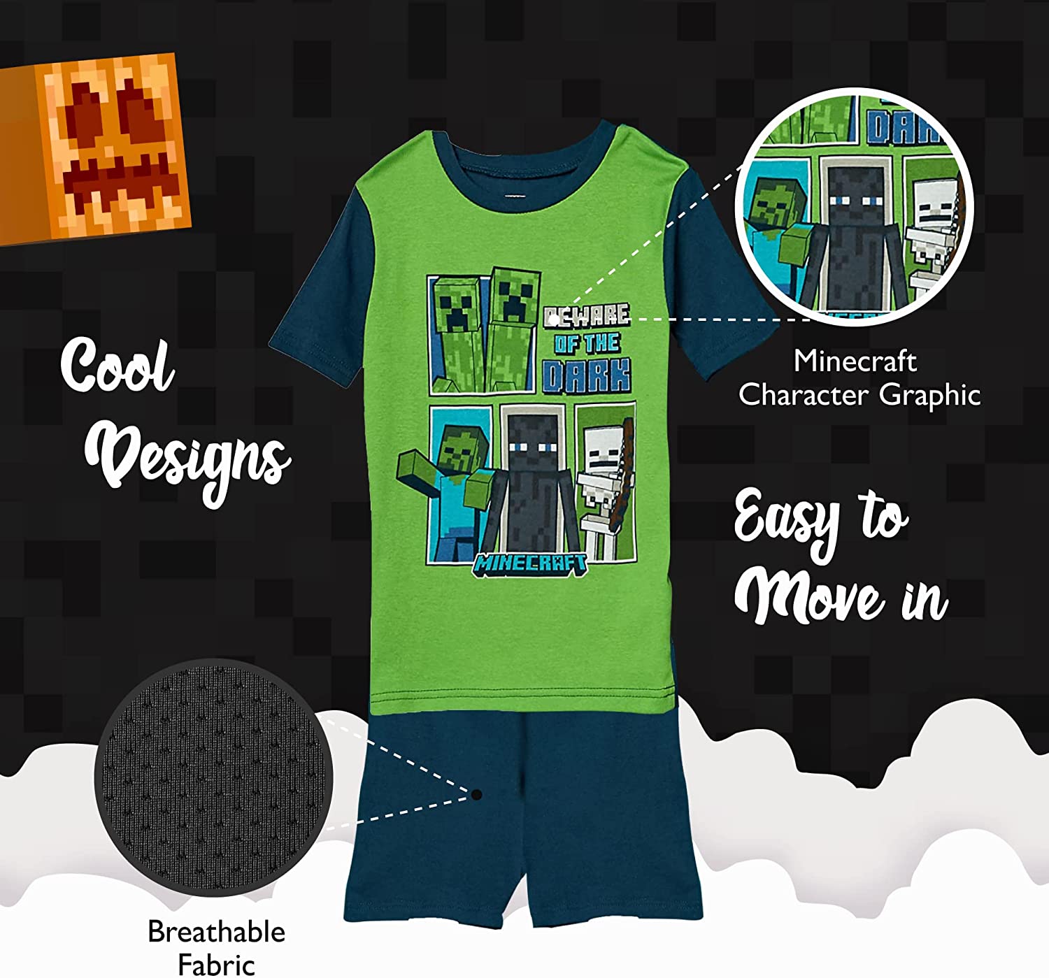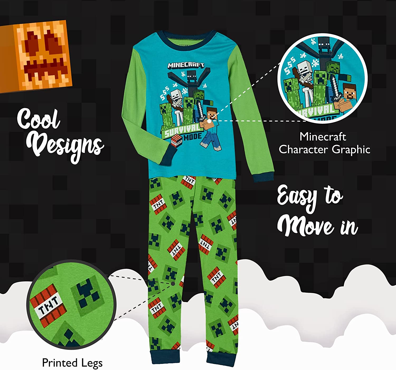 - YEAR-ROUND BOYS’ PAJAMAS: Get your little guy ready for adventures with Steve, creepers, zombies, and more in these fun “Minecraft” boys’ pj’s. He’ll drift off to sleep dreaming about his favorite game. Officially licensed “Minecraft” merchandise