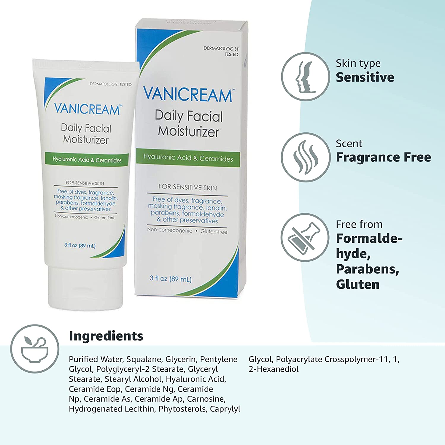 - Sensitive moisturizer: Vanicream fragrance-free daily face moisturizer is a lightweight, gluten-free moisturizer for sensitive skin