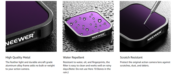 - 【Easy to Use】Unscrew the original filters counterclockwise, then turn the filter clockwise to allow a quick swap to another filter. This filter kit helps to get crystal clear pictures and videos efficiently during climbing, cycling, skydiving, etc.