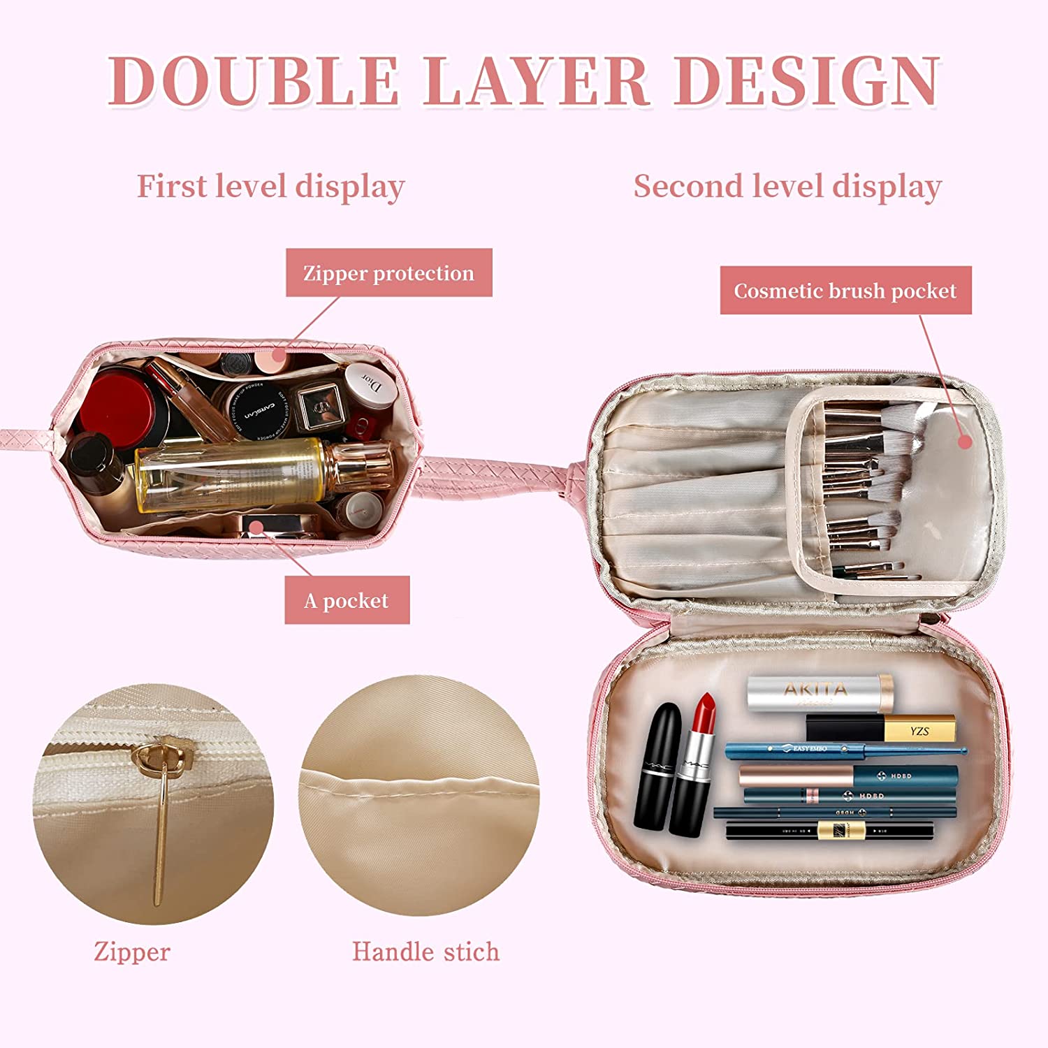 ♥ Large capacity: the size of the cosmetic pouch: is 9.25*5.3*7.28 inches, wide handle at the side, and is easy to carry. Large capacity storage can take all cosmetics without worrying about being unable to hold all the items. The cosmetic bags for women can meet the carrying needs, maintain fine makeup at any time, and make travel more pleasant.