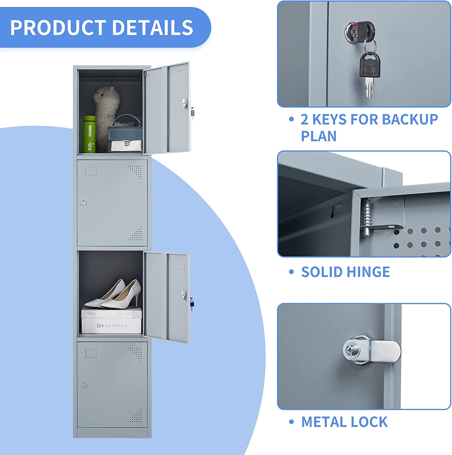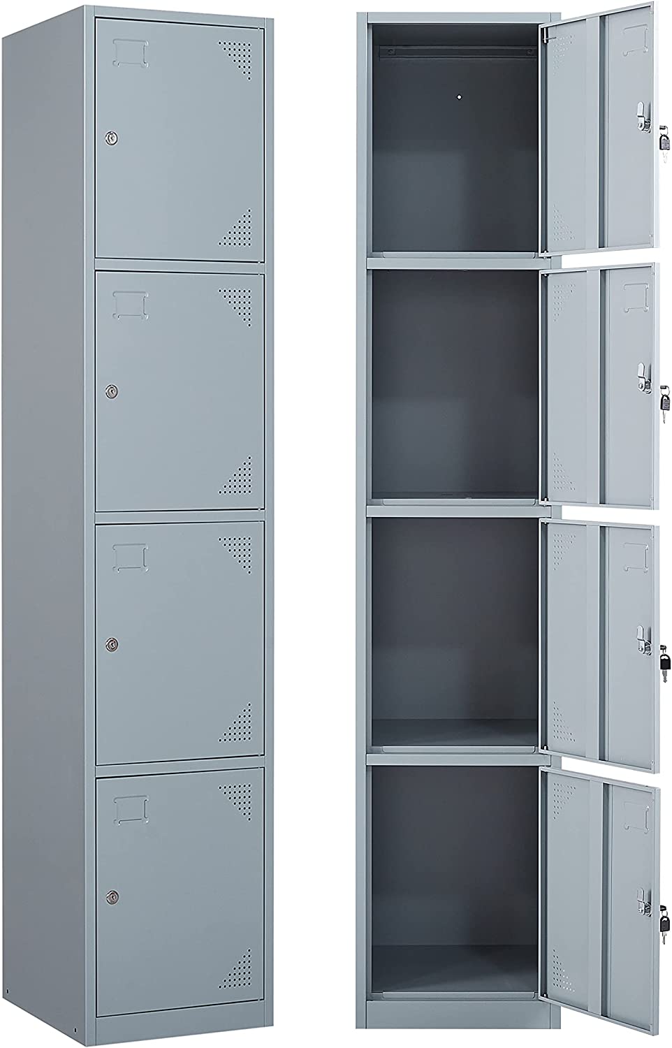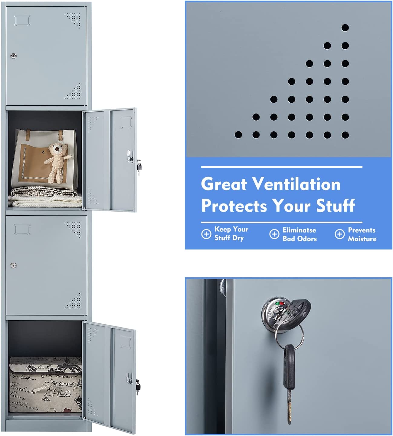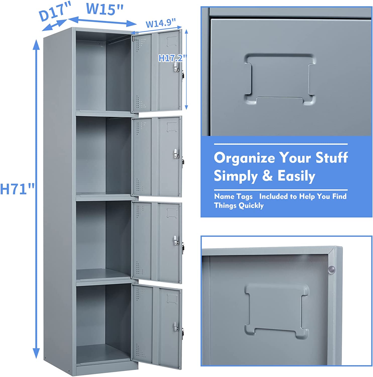 Yizosh Metal Locker for Gym, School, Office, 71" Metal Storage Locker Cabinets for Employees, Students Steel Lockers Four Tier with 4 Doors (Grey)