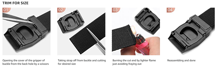 - KEEPING FIT--The nylon strap is stretchable to adapt the waist variation in different occassions,E.G. before and after lunch,sitting or climbing,no need to adjust time to time.and it is a cut-to-fit strcuture,by just simply taking off the buckle to cut the strap,so you can just buy a little longer,no need to worry about a wrong size;