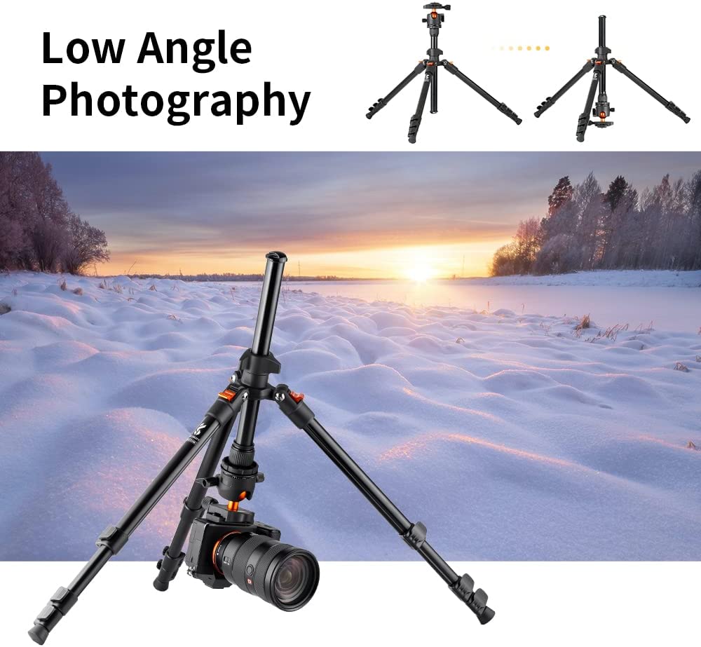 【Lightweight and Portable】4 section leg can adjust tripod height from 20.4''/52cm to 64.1''/163cm; it can be folded to 15.3''/39cm to make it easy to put it in the carrying bag; the net weight with the ball head included is only 2.53lbs/1.15 KG.