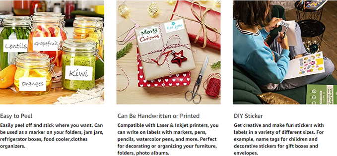 【Multipurpose】The matte white label is clear and easy to read, ideal for use as shipping labels, address labels, product labels; also use sticky writing paper to mark folders and notebooks, member or student name tags and organize your household items.