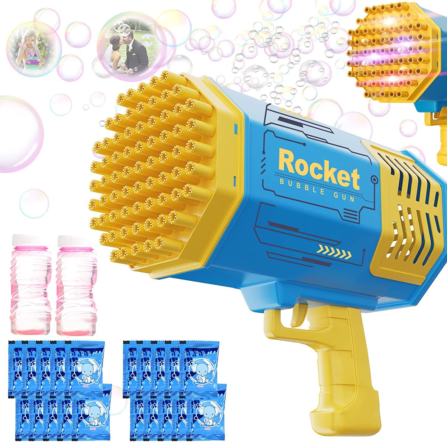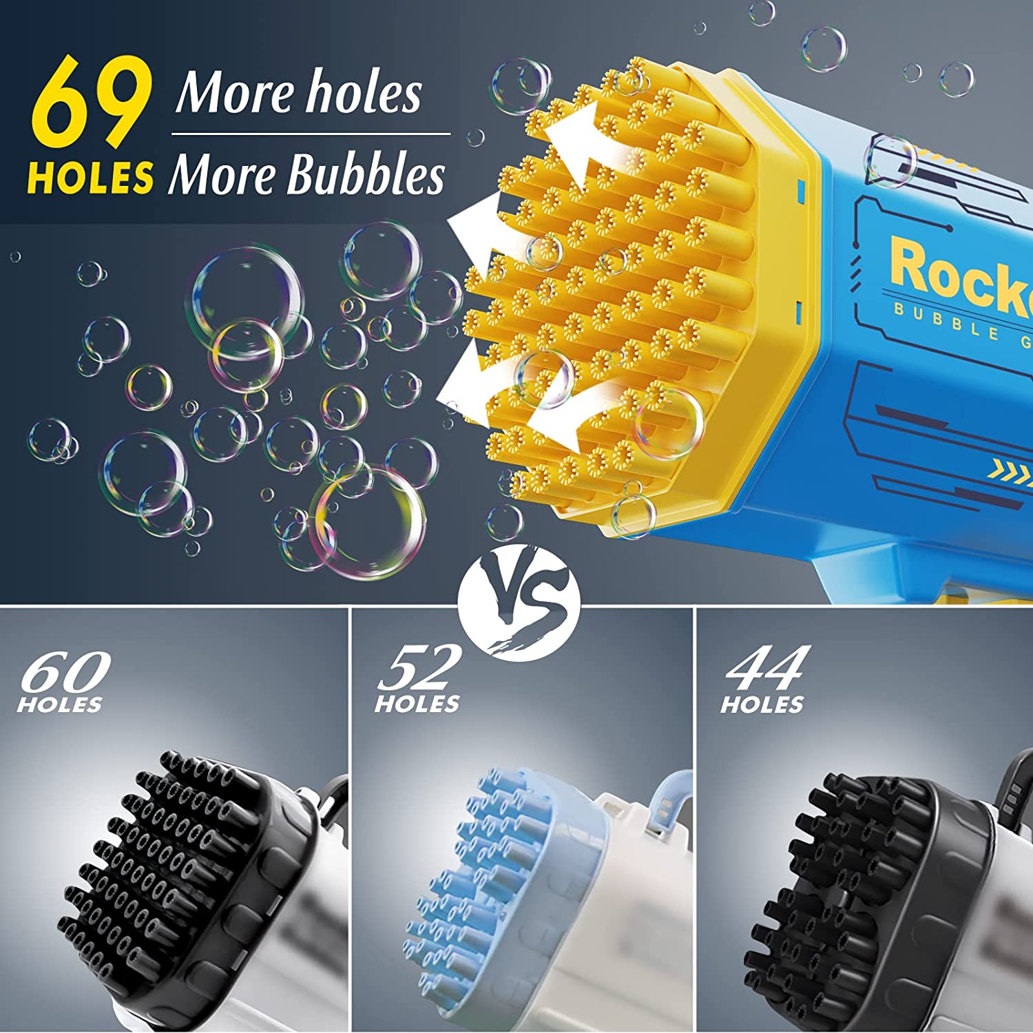 69 HOLES - Our bubble gun has 64 bubble holes and can blow thousands of bubbles at a time. It also comes with colored lights for surprising effects when playing at night!