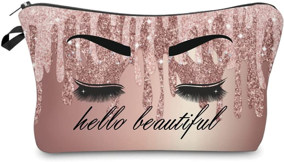 Hello Gorgeous Makeup Bag for Purse Eyelash Pink Cosmetic Bags for Women Inspirational Gift for Girls Small Funny Cosmetics Glitters Eyeshadows Travel Bag Cases for Toiletries Accessories Organizer