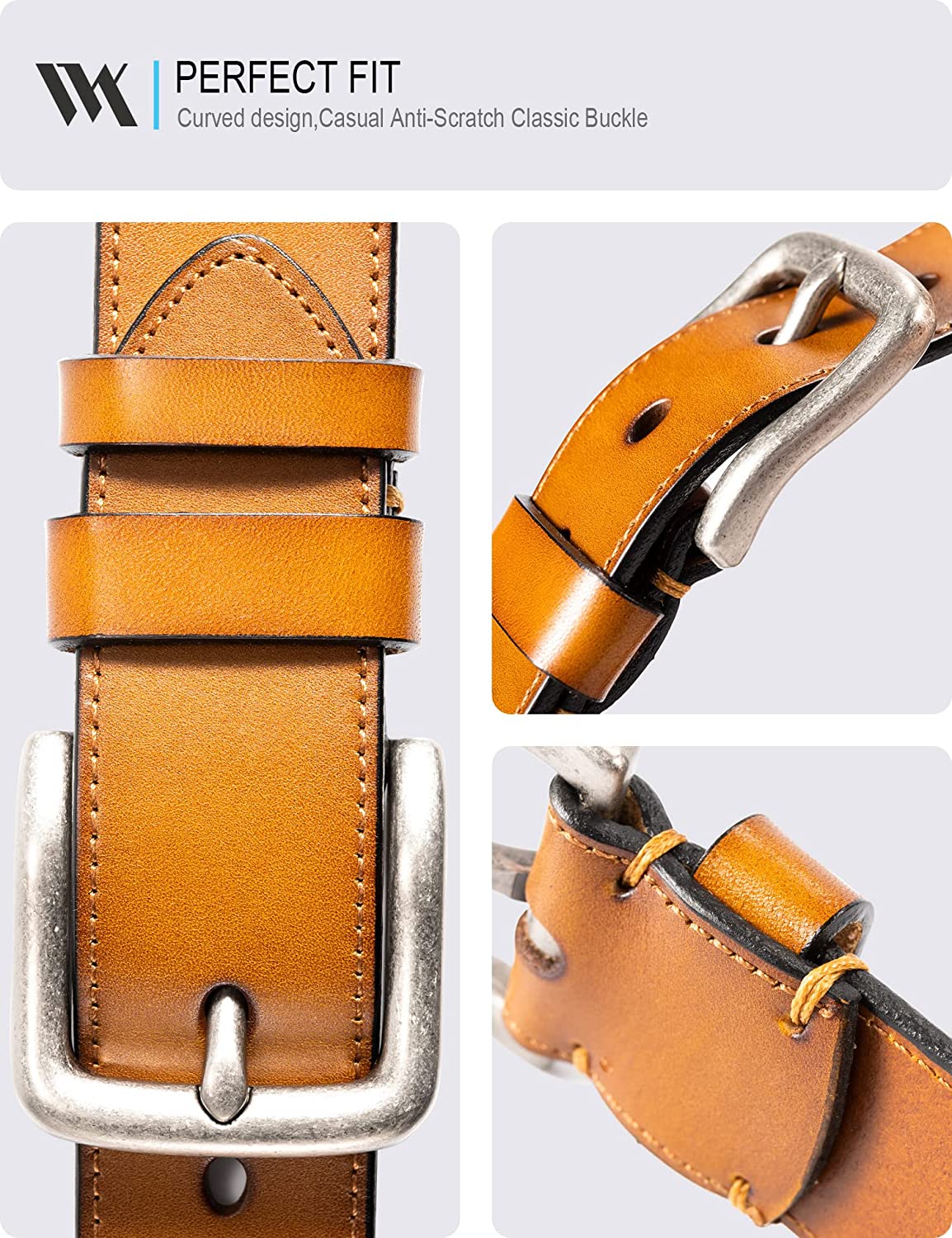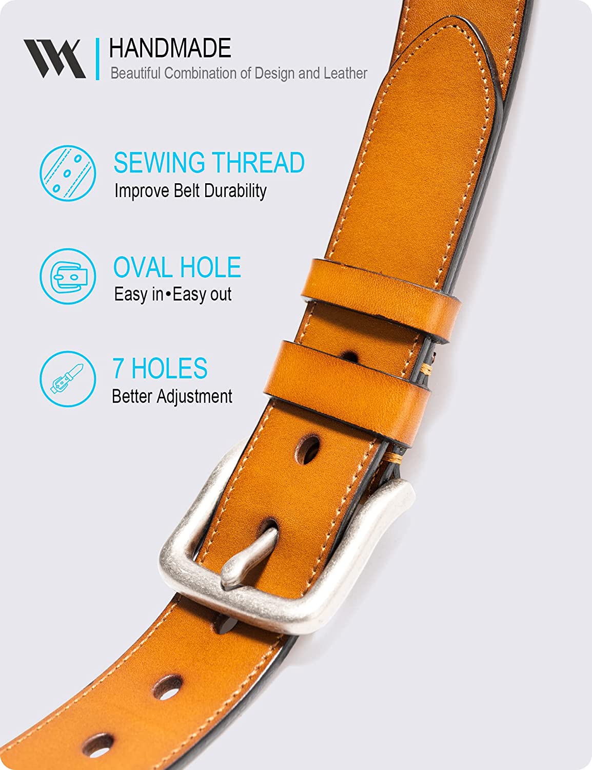 [Ergonomic]: Unlike a flat buckle, the curve of heavy duty metal buckle makes it fit the waist curve. Combined with Exquisite handmade, this leather belt for men that will soon become your favorite go-to durable leather belt.