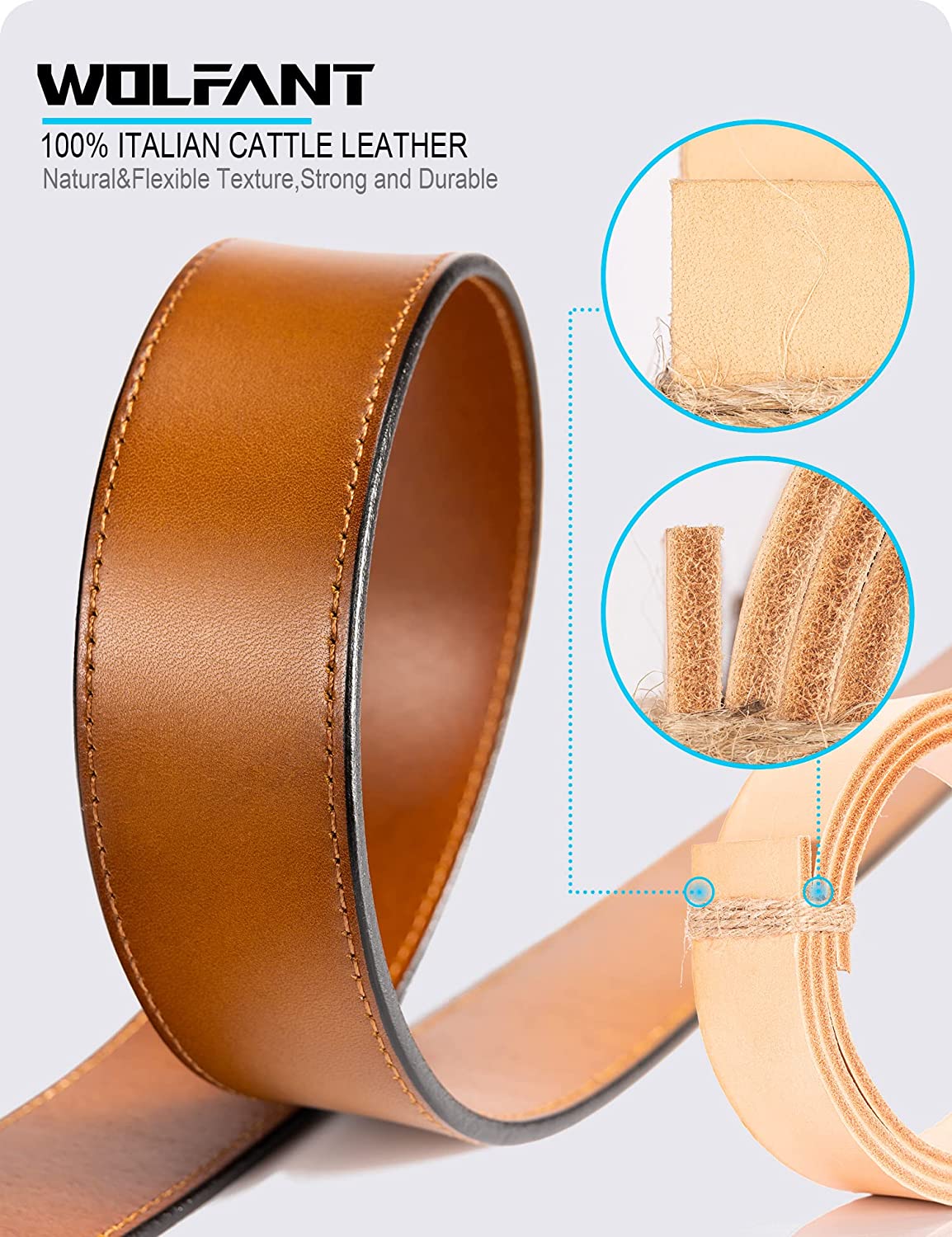 [Full Grain]: This solid belts is handmade of 100% Italian Full Grain Leather– NO Fillers, NO Bonding, one single piece of 40mm top Real Solid cowhide, wont break, wont split. The quality of this leather ensures a long-lasting life.