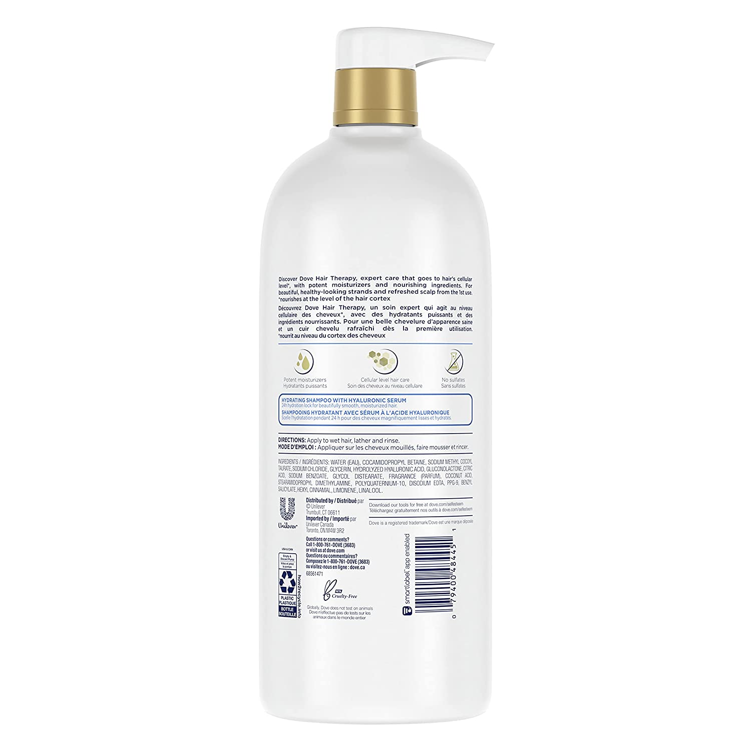 Wondering how to get soft, smooth hair? Shampoo plays a big part in how your hair looks and feels – and we’ve got just the thing. Treat your hair to a spa day from home and give it the nourishment it deserves with Dove Hair Therapy Hydration Spa Shampoo and Conditioner. Perfect for a dose of hair hydration, this hydrating shampoo for dry hair is formulated with hyaluronic serum to keep your hair feeling beautifully soft, smooth and nourished when used alongside our Hydration Spa Conditioner. And that’s not all, it leaves your scalp feeling refreshed, too. Specially created to care for your hair at a cellular level*, this moisturizing shampoo is made with potent moisturizers and nourishing ingredients. When used with our Hydration Spa Conditioner, it helps you give your hair the care it needs, exactly where it needs it. Plus, if you’re looking for a shampoo to moisturize hair, our 24-hour hydration lock does just that. Simply smooth it on and enjoy a spa-worthy treatment every time you shower. Perfect for: Expert hair care: Our Hydration Spa Shampoo works at your hair’s cellular level*, using expert care to keep hair moisturized. Formulated with hyaluronic serum and potent moisturizers, you’ll be left with hair that feels soft, smooth and nourished after just one wash, when used with our Hydration Spa Conditioner. Hair hydration: This hydrating shampoo uses 24-hour hydration lock technology to keep hair moisturized all day long, so dryness can become a thing of the past. A spa-like experience: Our Hydration Spa Shampoo blends expert care with the gentle Dove formulas you know and love to leave you with nourished, healthy-looking hair and a refreshed scalp – all from the comfort of your home. Cruelty-free hair care: Globally, Dove does not test on animals. Our Hair Therapy Hydration Spa range carries the PETA cruelty-free logo for added peace of mind. How to use: Enjoy this shampoo as part of your shower routine.